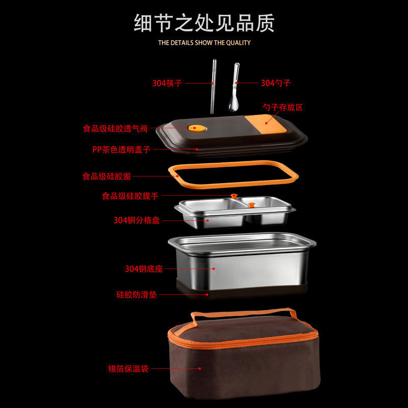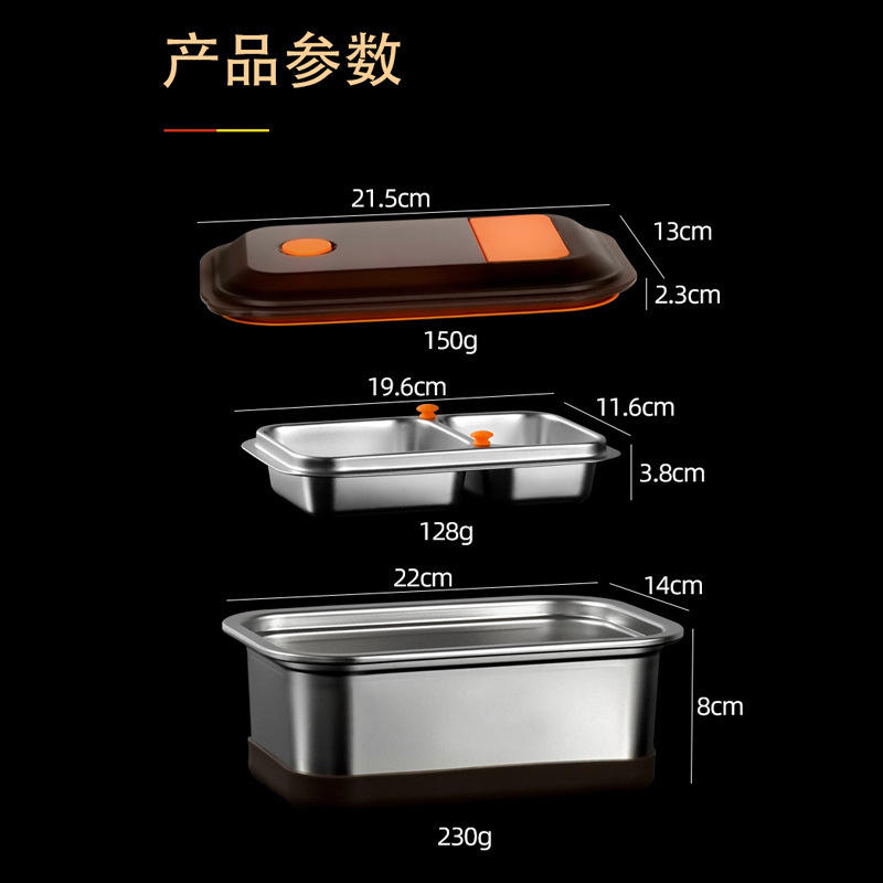 กล่องข้าวสแตนเลส 304 สองชั้นทรงสี่เหลี่ยมพร้อมฝาพลาสติกใช้กับไมโครเวฟได้สำหรับนักเรียนและคนทำงาน