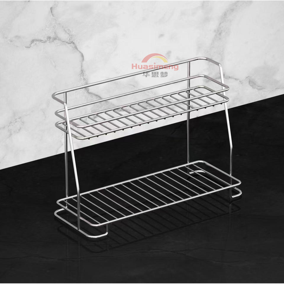 304 สแตนเลสสตีลชั้นวางของสองชั้นที่วางแก้วในครัวมีด้ามจับความลึก 8-11.9 นิ้วมัลติฟังก์ชั่นไม่ต้องติดตั้ง