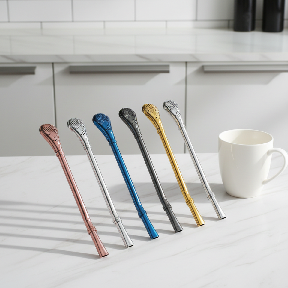ช้อนดูดชาเยอร์บามาเต ทำจากสแตนเลสสตีลเงางาม สไตล์ไม่ซ้ำใคร