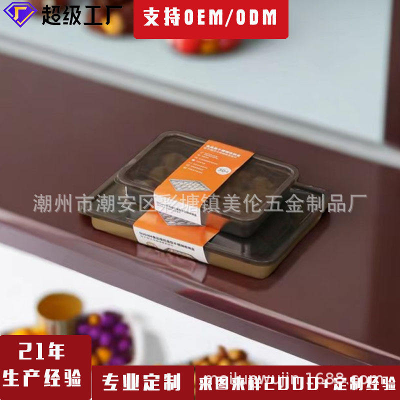 ภาชนะเก็บอาหารสแตนเลส 304 ทรงสี่เหลี่ยมผืนผ้า ฝาปิดแบบหนีบ หนาขึ้นสำหรับใช้ในตู้เย็นที่บ้าน