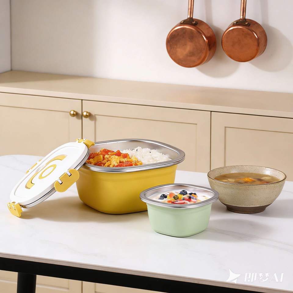 กล่องเก็บอาหารสแตนเลส 304 ฝาปิดแบบหนีบ ใช้กับไมโครเวฟและตู้เย็นได้ กล่องใส่ผลไม้ กล่องข้าวกลางวัน