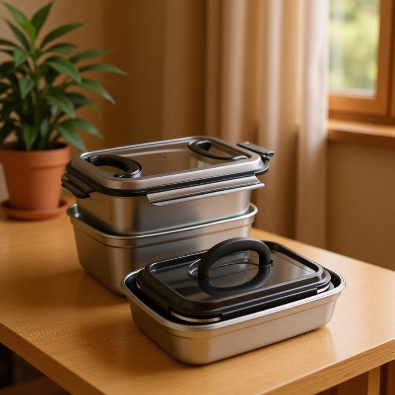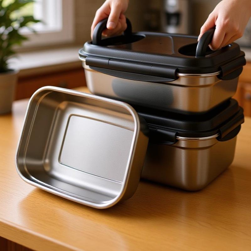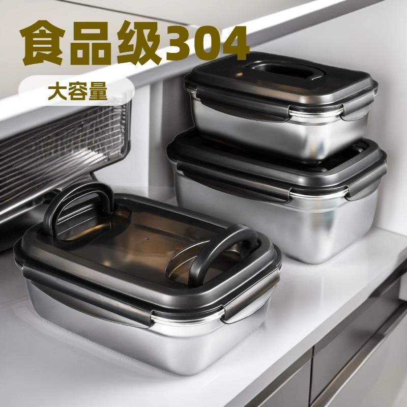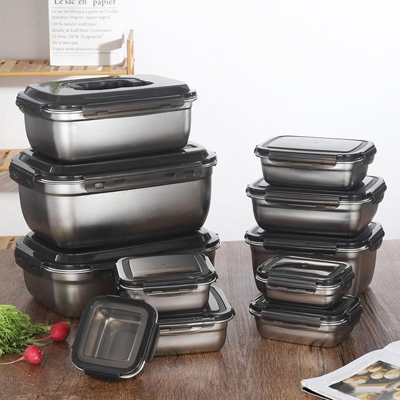 ภาชนะเก็บอาหารสแตนเลส 304 ทรงสี่เหลี่ยมผืนผ้า ปิดสนิท พร้อมหูหิ้ว สำหรับใช้ในตู้เย็นและการเดินทาง