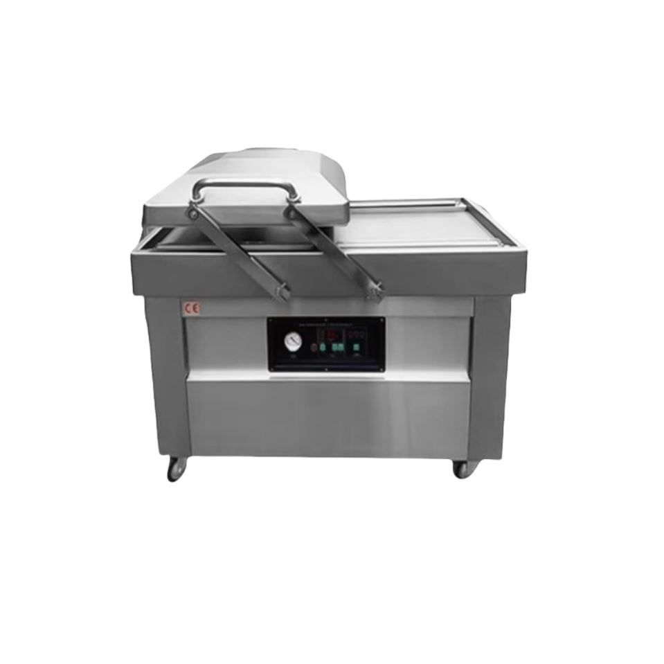 เครื่องซีลสูญญากาศแบบสองห้องอัตโนมัติเต็มรูปแบบ ทำจากสแตนเลส 304 สำหรับซีลแบบร่องลึก บรรจุภัณฑ์อาหารทะเล เนื้อสัตว์ ผลไม้ สินค้าอื่นๆ แบบซองฟอยล์และไม้