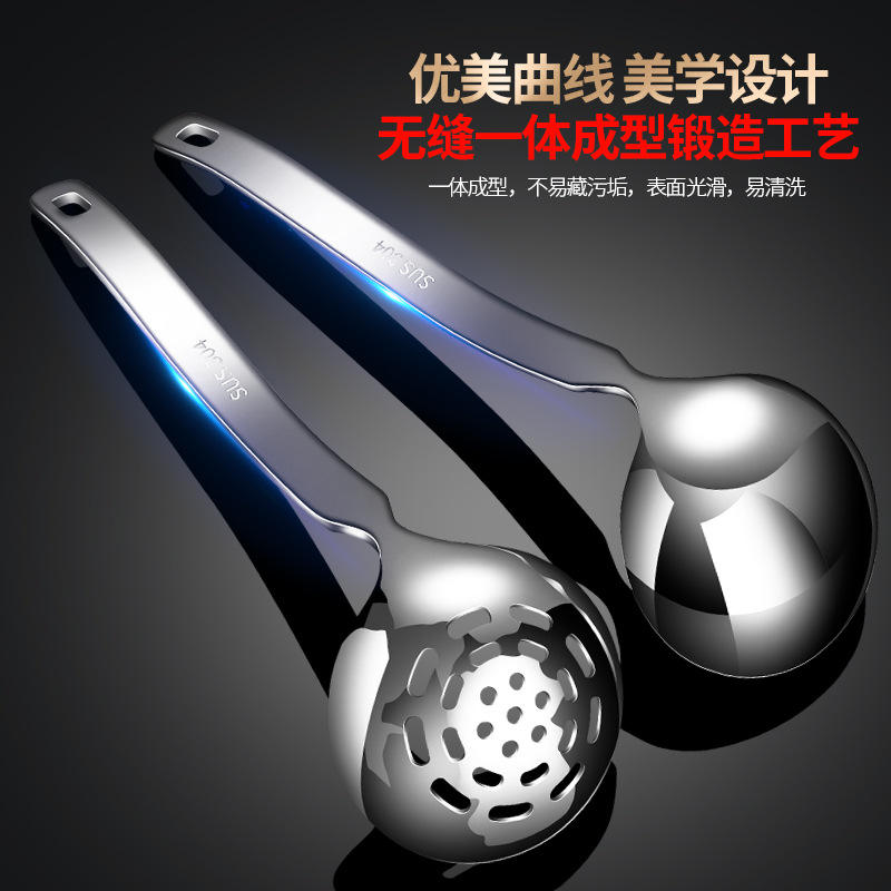 ชุดทัพพีสแตนเลส 304 สำหรับหม้อไฟ 2 ชิ้น ทัพพีตักซุปแบบหนาพร้อมกระชอน ทัพพีขึ้นรูปชิ้นเดียว อุปกรณ์ครัวสำหรับทำอาหาร