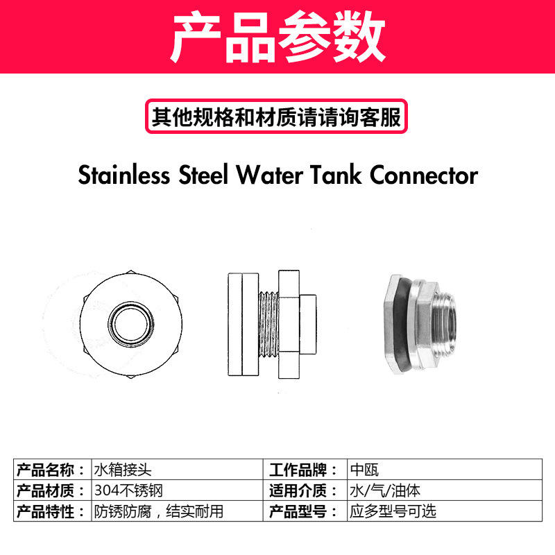 ข้อต่อเกลียวในสแตนเลส 304 สำหรับถังเก็บน้ำ หอเก็บน้ำ ถังน้ำ ถังปลา ถังน้ำมัน-ข้อต่ออื่นๆ