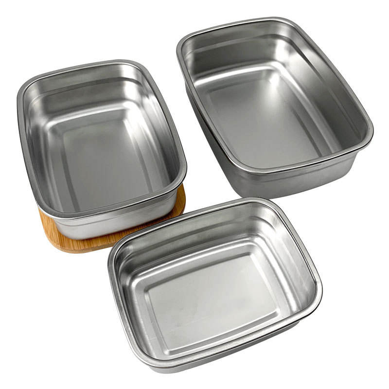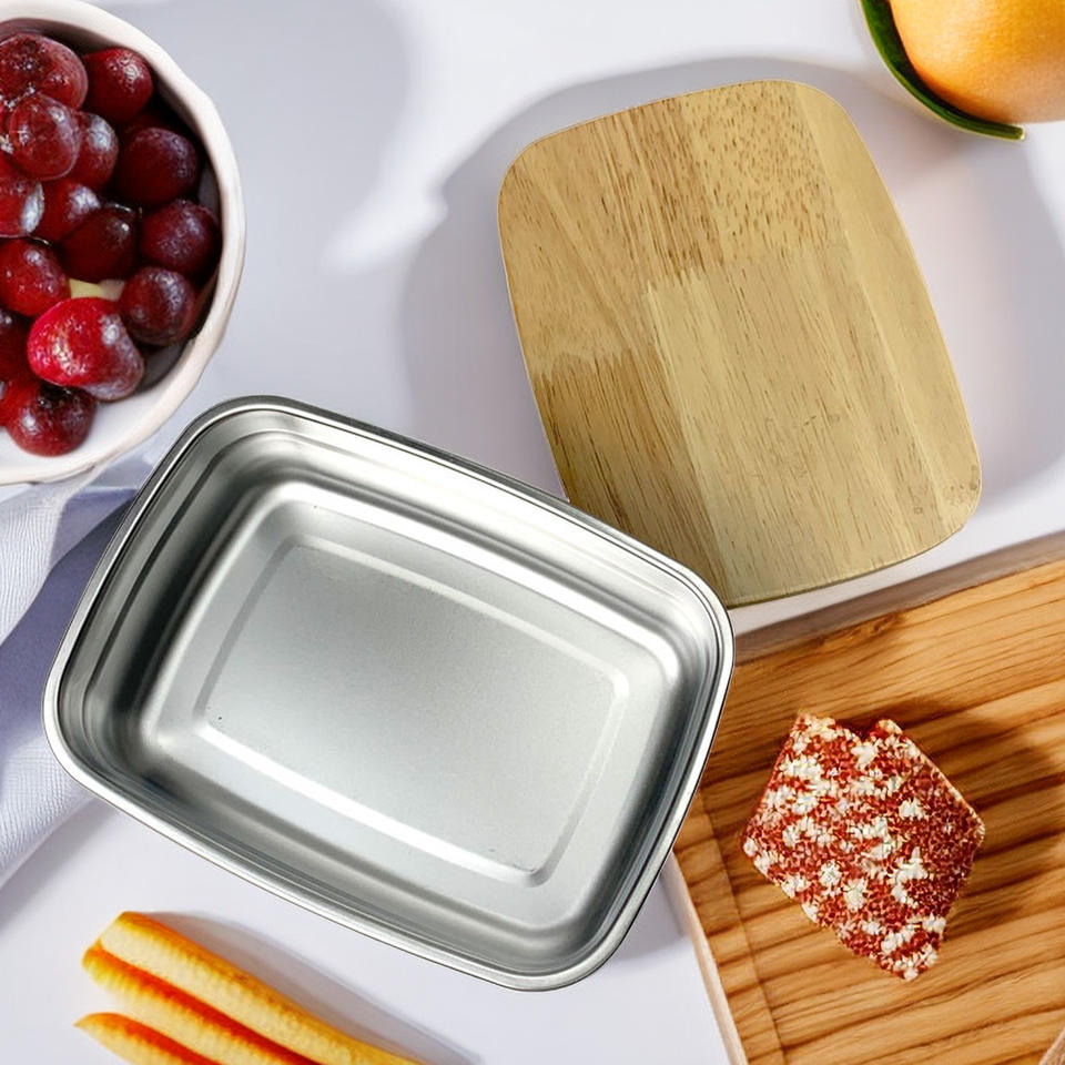 กล่องอาหารกลางวันสแตนเลส 304 ทรงสี่เหลี่ยม ฝาไม้ สำหรับเด็ก