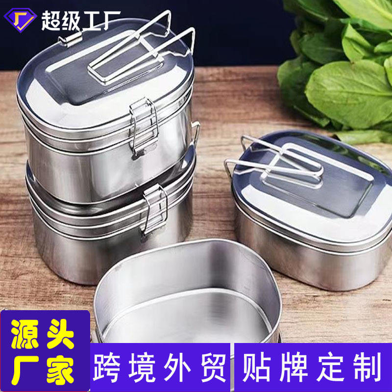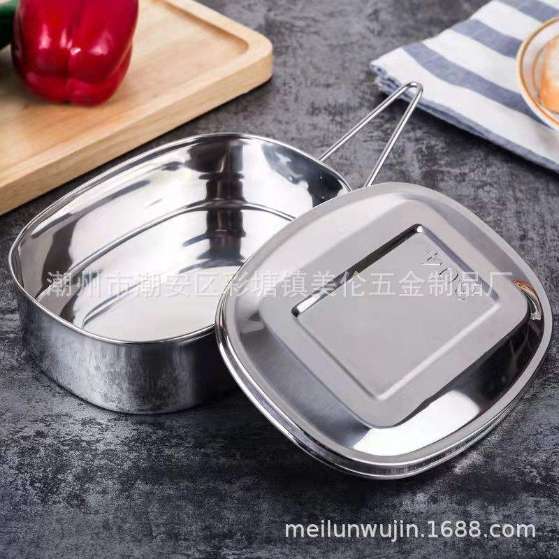 กล่องอาหารกลางวันสแตนเลส 304 ทรงสี่เหลี่ยมชั้นเดียวสองชั้นพร้อมฝาปิดสำหรับนักเรียนพนักงานออฟฟิศใช้ในโรงอาหาร