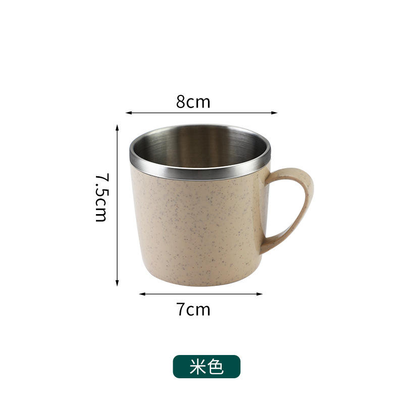 ถ้วยน้ำสเตนเลสสตีลขนาดเล็กทำจากฟางข้าวสาลีถ้วยดื่มน้ำ304สำหรับเด็กกันลวกและทำให้เด็กตกหล่นใช้ในครัวเรือน