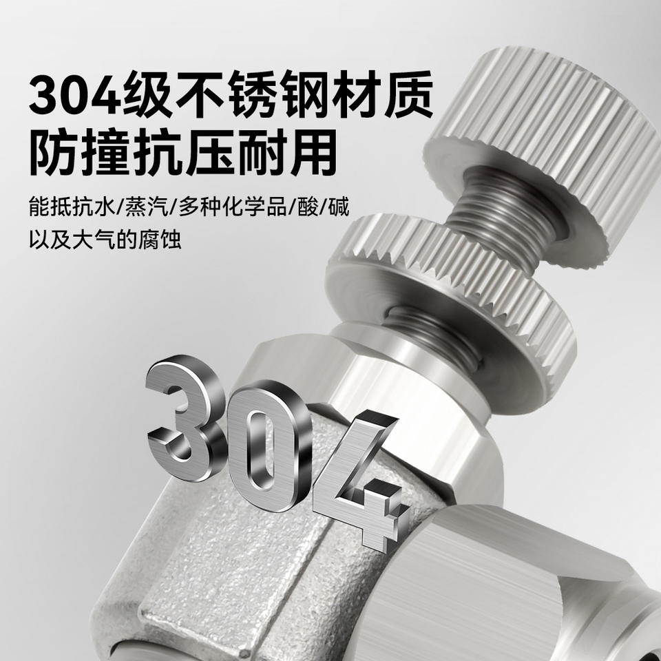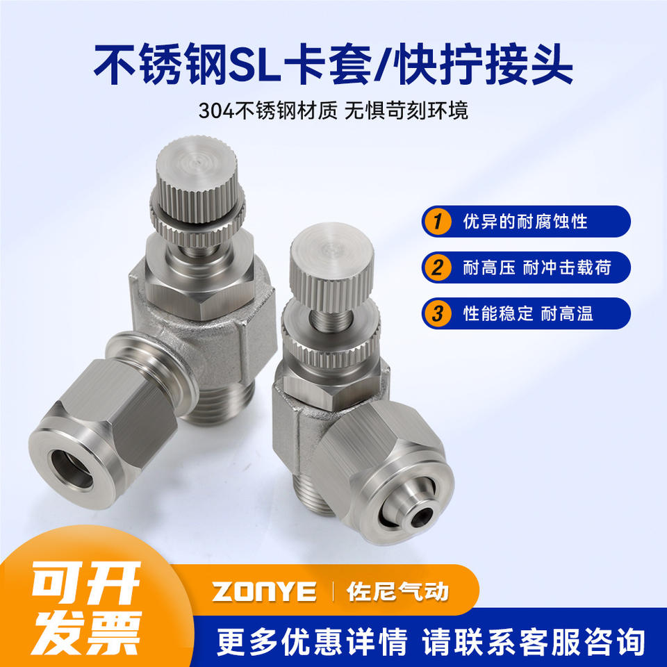 ข้อต่อลมนิวเมติกสแตนเลส 304 ทนความร้อนสูง ทนแรงดันสูง ทนการกัดกร่อน วาล์วควบคุมการไหลแบบหมุนเร็ว SL