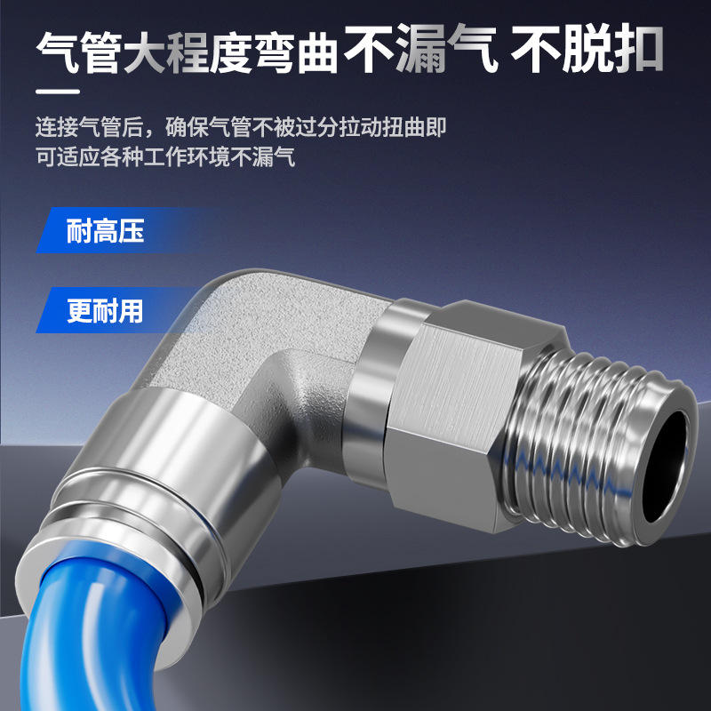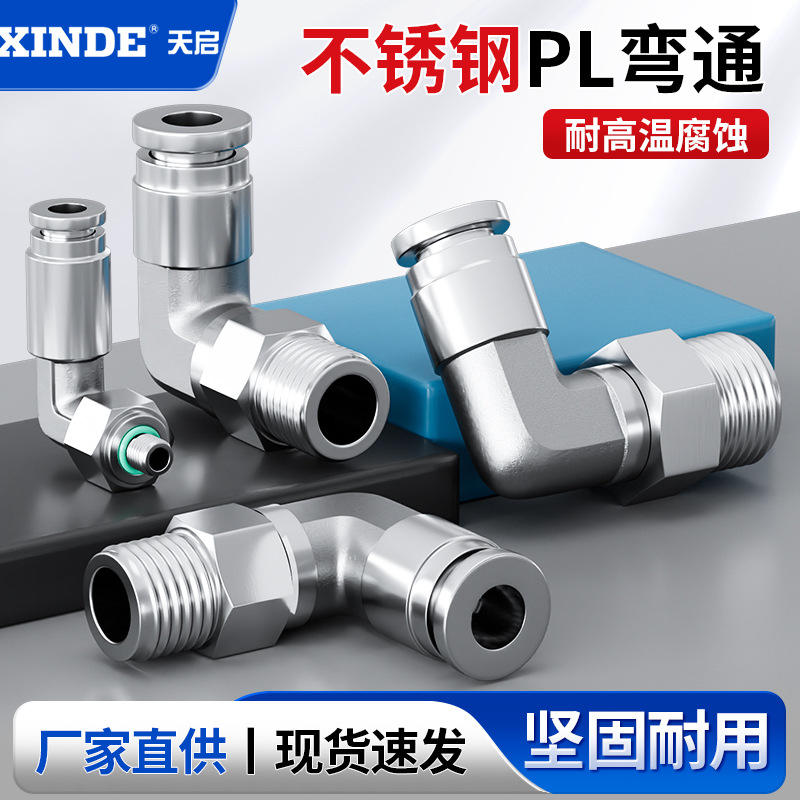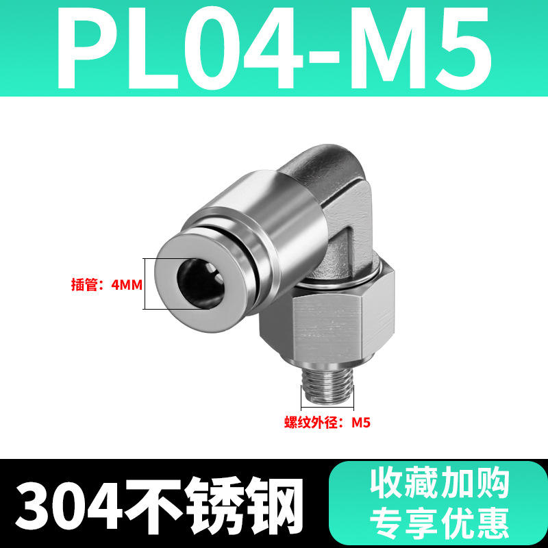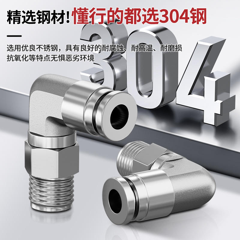 ข้อต่อเร็วแบบนิวเมติกสแตนเลส 304 รุ่น PL8-02 แบบมุมฉาก ทนความร้อนสูง ทนแรงดันสูง ทนการกัดกร่อน อะไหล่นิวเมติก