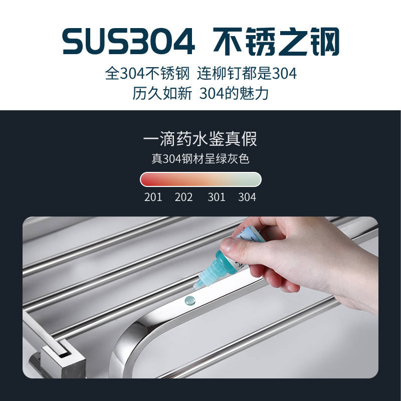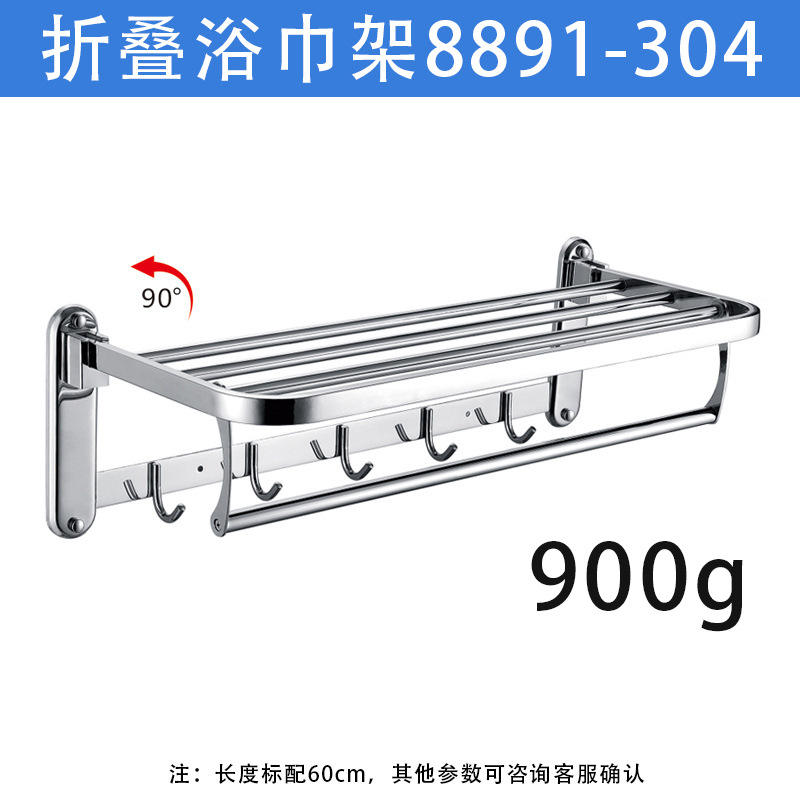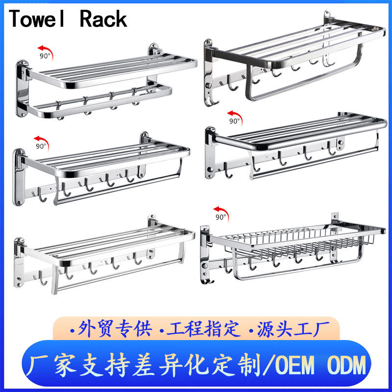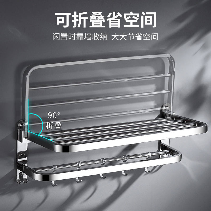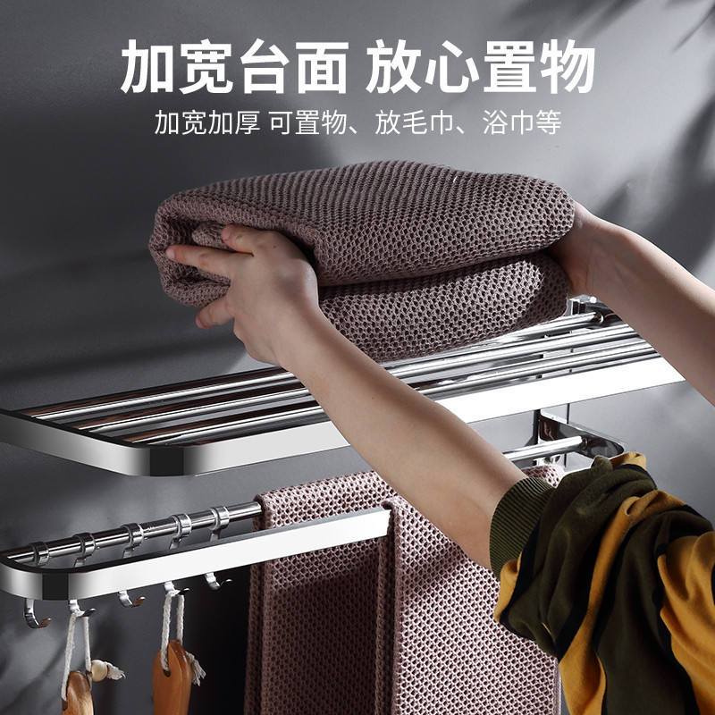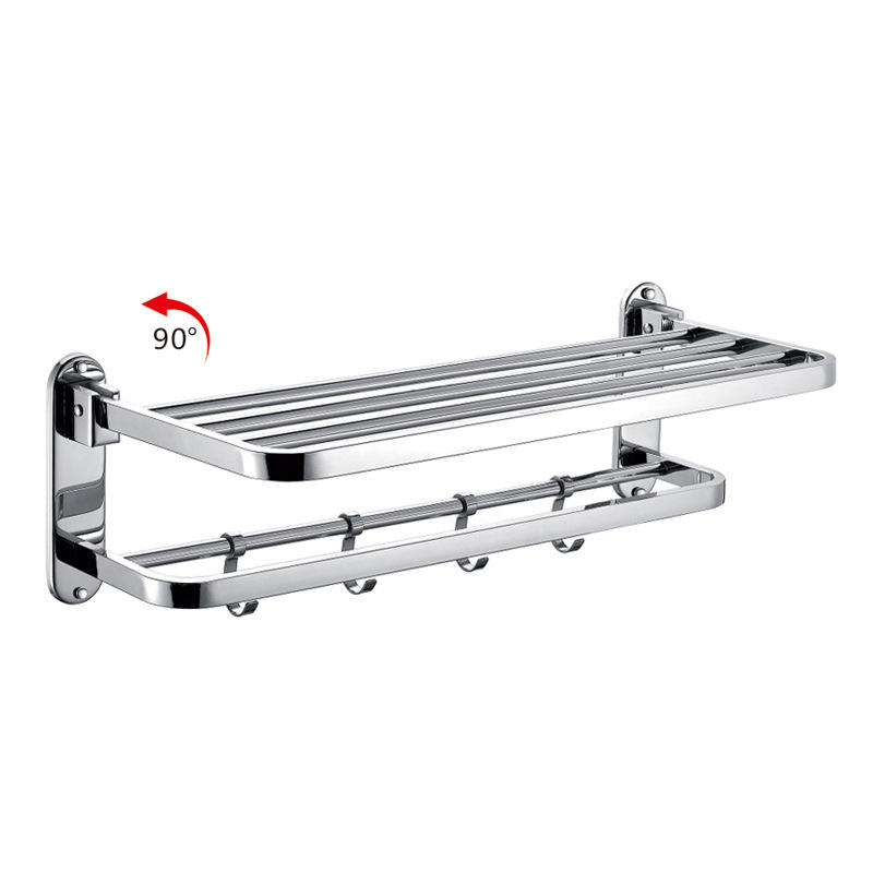 ชั้นวางผ้าขนหนูแบบพับได้ทำจากสแตนเลสสตีล304พร้อมตะขอสองชั้นเคลื่อนย้ายได้สำหรับใส่ของในโรงแรม