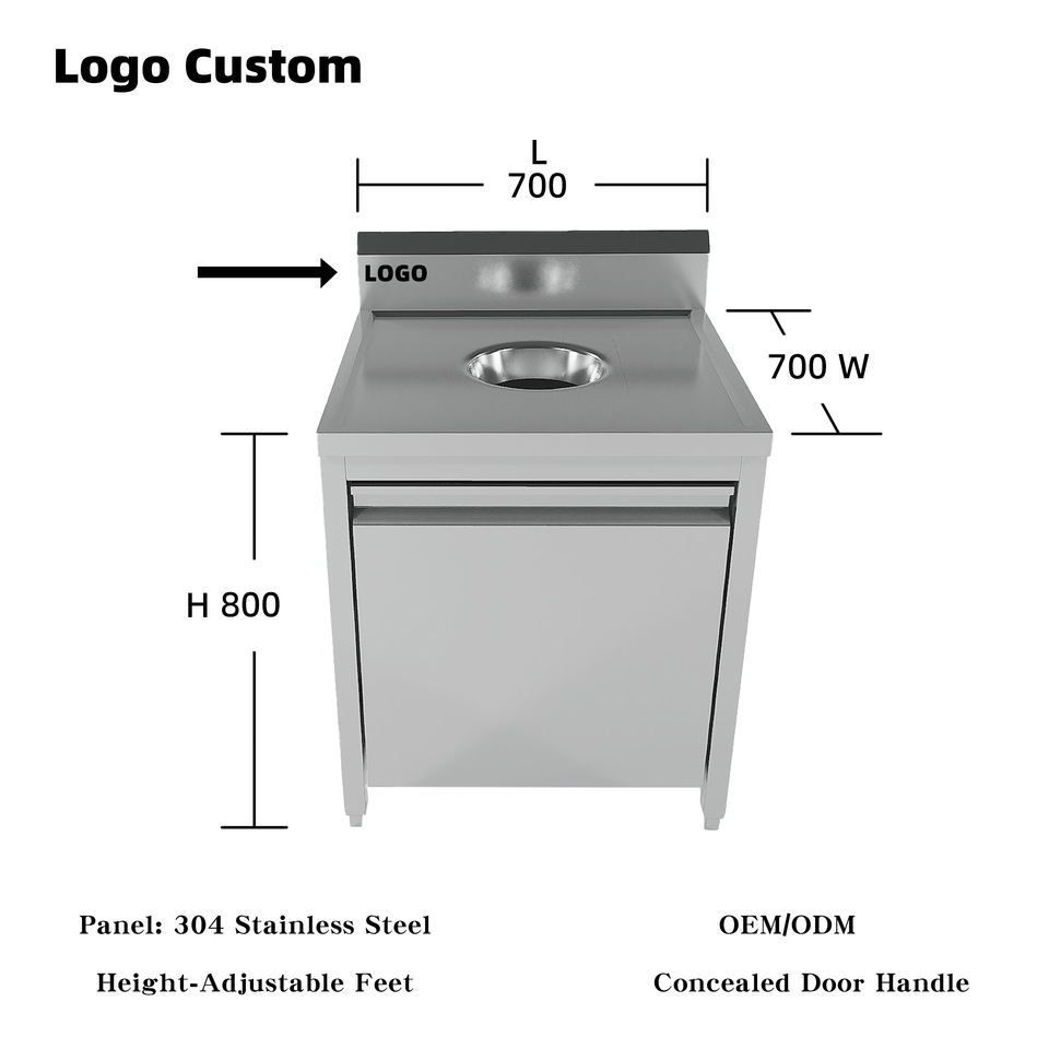 ตู้เก็บขยะครัวสแตนเลส 304 แบบเปิดเดี่ยว สำหรับโรงแรม โรงอาหาร และครัวเชิงพาณิชย์ ผลิตจากเหล็ก