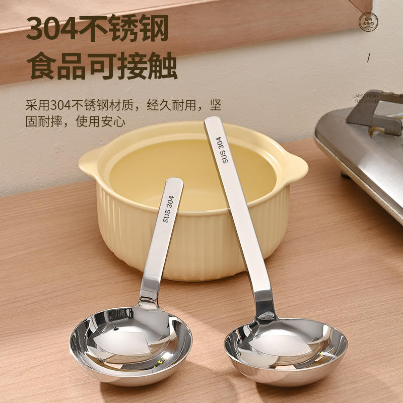 ชุดช้อนซุปสแตนเลส 304 หัวกลมขนาดใหญ่ เกรดอาหาร ปลอดภัยสำหรับเครื่องล้างจาน 2 ชิ้น