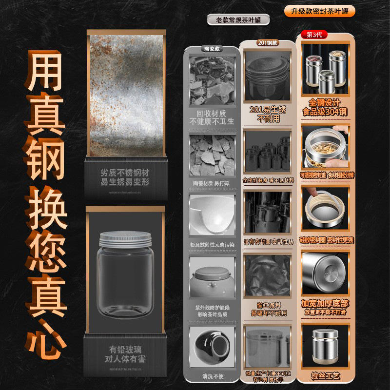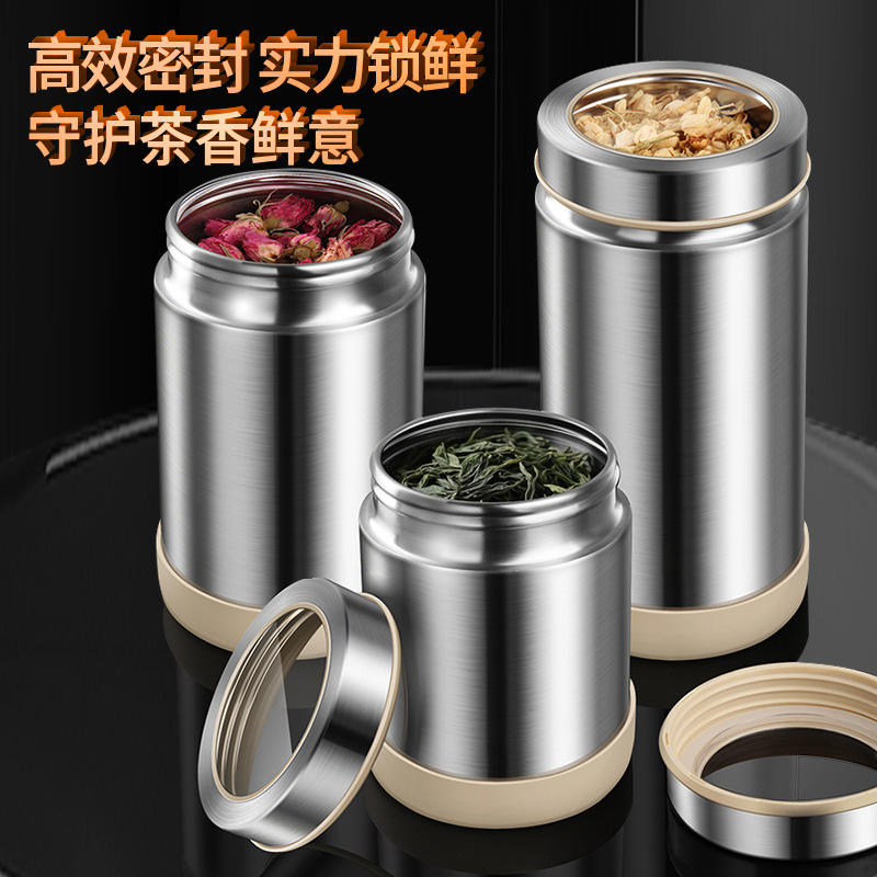 กระป๋องชาสแตนเลส 304 ฝาโลหะทรงกระบอก ภาชนะเก็บอาหารแบบปิดผนึกสำหรับเมล็ดกาแฟ ป้องกันความชื้น