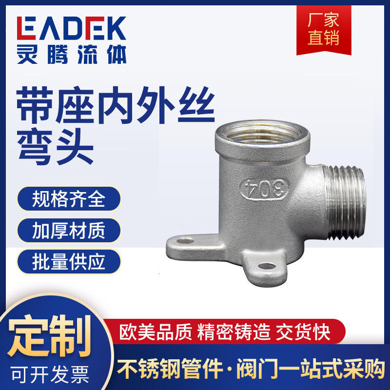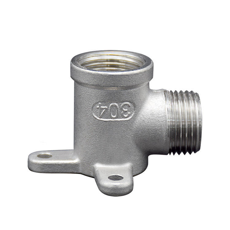 ข้อต่อเหล็กกล้าไร้สนิม 304 แบบมีเกลียวพร้อมฐานยึด 90 องศา อุปกรณ์เสริมก๊อกน้ำ ท่อระบายน้ำ