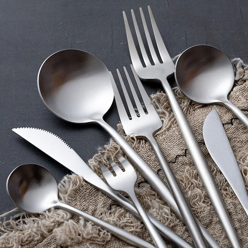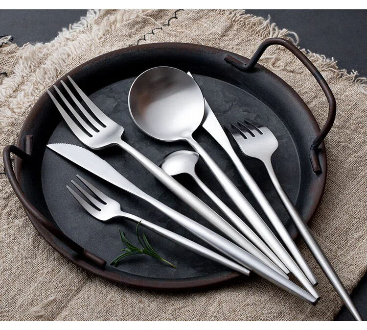 ชุดช้อนส้อมมีดสแตนเลส 304 ชุดอุปกรณ์รับประทานอาหารแบบโปรตุเกส ช้อนสแตนเลสแบบหนา มีดและส้อมสเต็กคุณภาพสูง