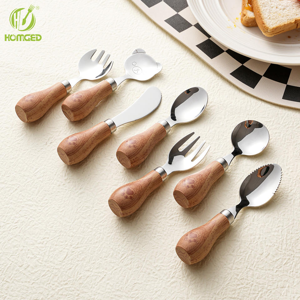 ช้อนสแตนเลส 304, มีดเด็กพร้อมด้ามจับพลาสติกเลียนแบบไม้, ส้อมและช้อน