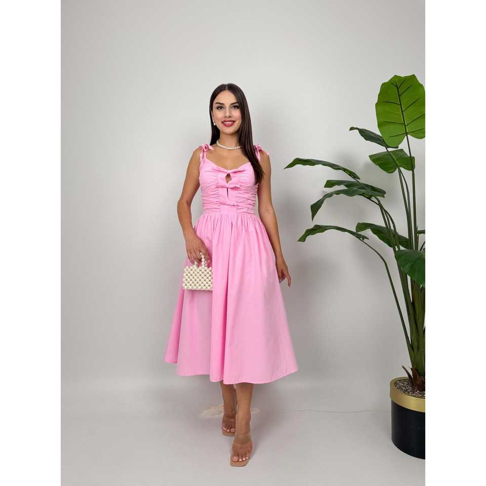 เดรสทรงเอไลน์สายเดี่ยว รุ่น 3045 สายสปาเก็ตตี้ เอวธรรมชาติ แต่งโบว์ เหมาะสำหรับงานปาร์ตี้ ลำลอง ผ้าทอ ระบายอากาศได้ดี