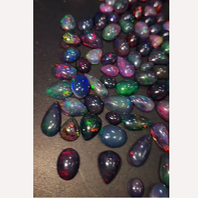 โอปอลสีดำเอธิโอเปียธรรมชาติ8มม. ถึง14มม. ลูกแพร์รูปไข่
