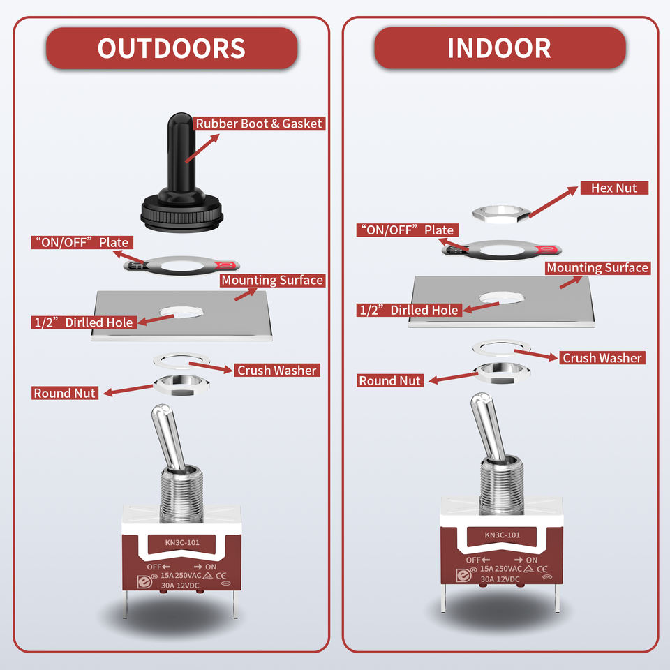 สวิตช์เปิด-ปิดแบบกด 30A 12V พร้อมฝาครอบป้องกัน ทนทาน แบบ SPST 2 ขา กันน้ำ