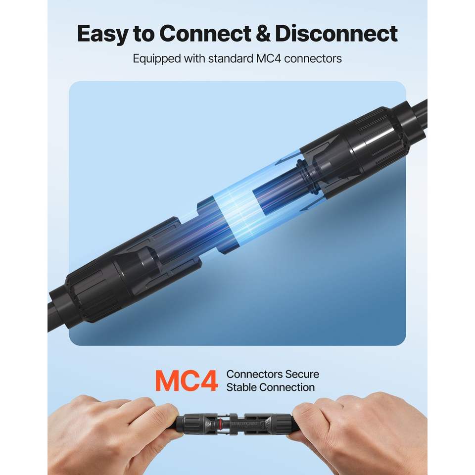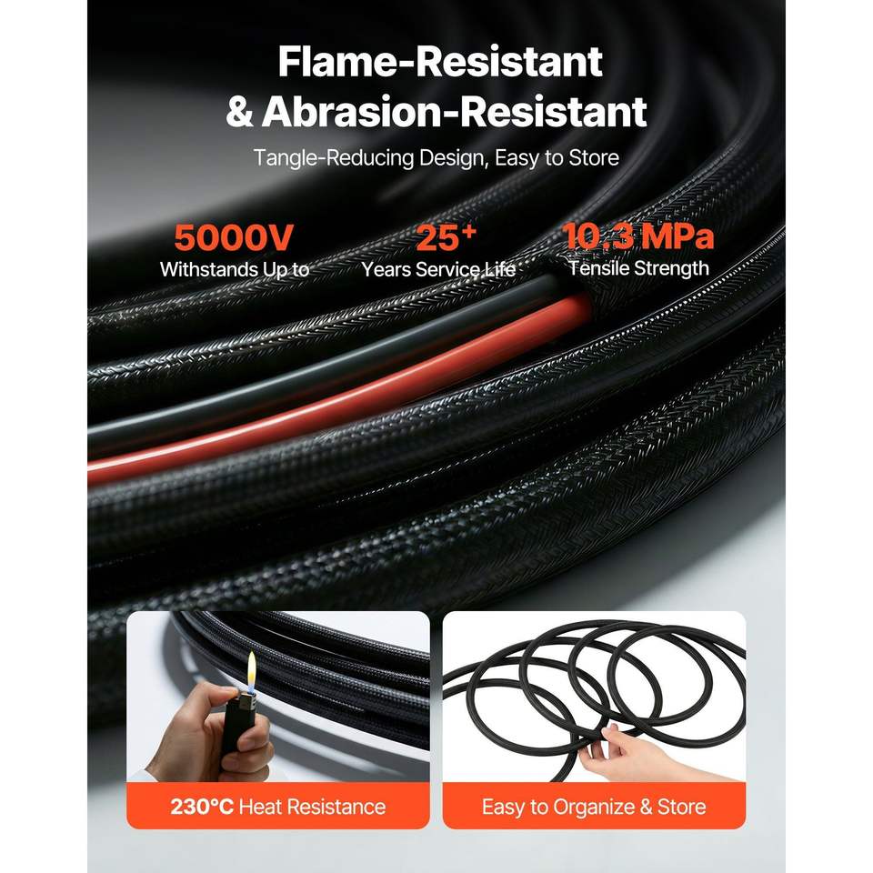 สายต่อแผงโซลาร์เซลล์ 30 ฟุต 10 AWG พร้อมปลอกหุ้มป้องกันไฟลุก ขั้วต่อตัวผู้และตัวเมีย สายไฟและสายต่อพ่วง