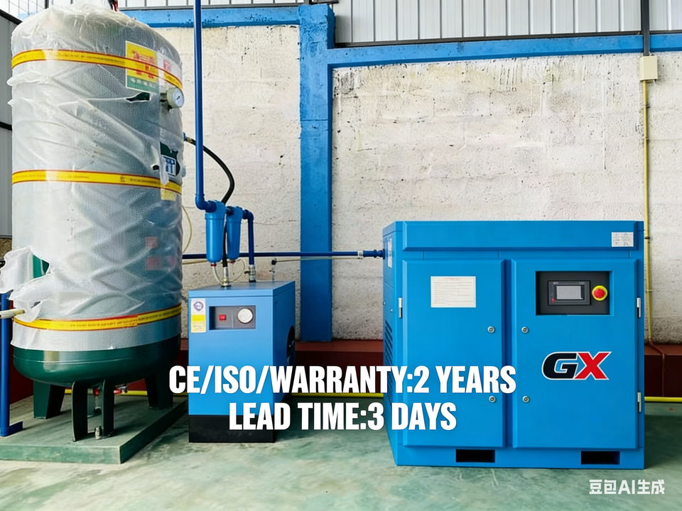 เครื่องอัดอากาศแบบสกรูไฟฟ้าอุตสาหกรรม 30 กิโลวัตต์ แบบตั้งพื้น ใช้ไฟ 380 โวลต์ AC ปราศจากน้ำมัน แรงดันสูง พร้อมมอเตอร์ เครื่องทำลมแห้ง และตลับลูกปืน