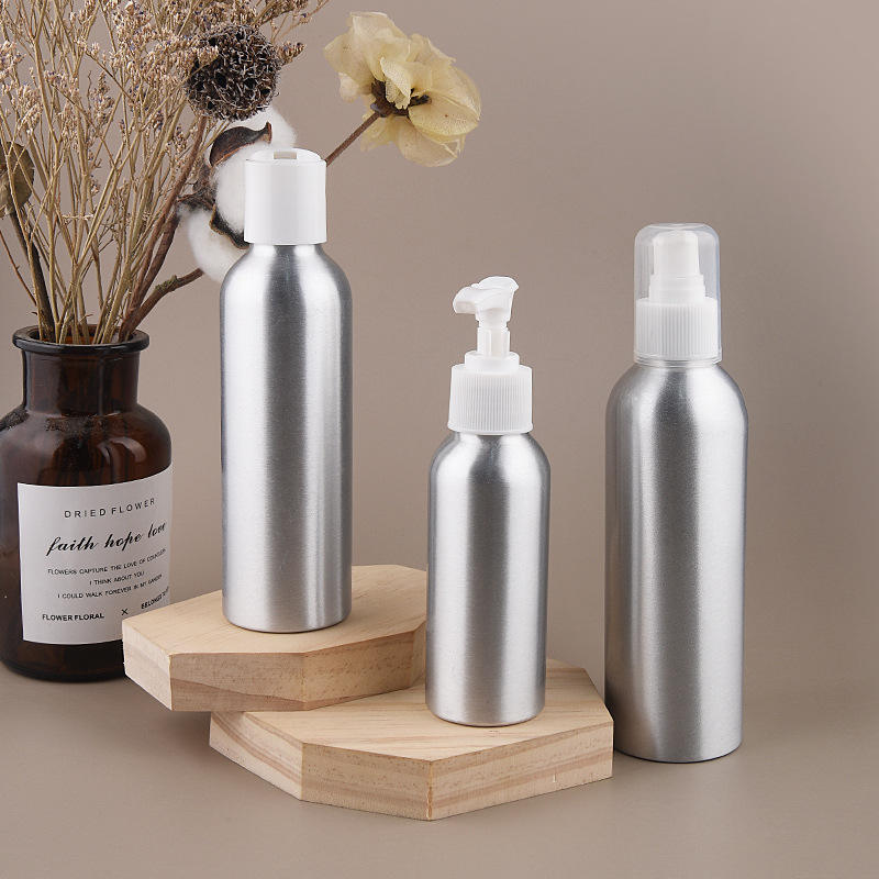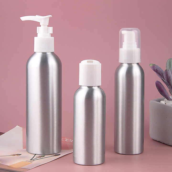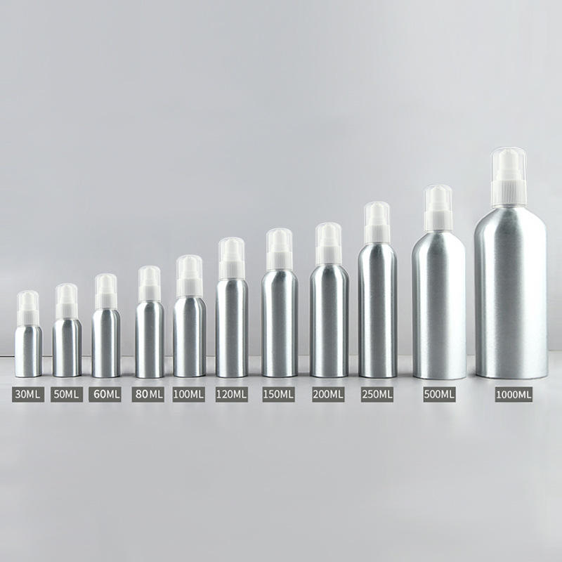 ฝาเกลียวขวดอลูมิเนียมสีเงิน30มล.-500มล. แชมพูบอดี้โลชั่นล้างมือบรรจุภัณฑ์กันแดดประกอบด้วยสเปรย์ปั๊มโลชั่น