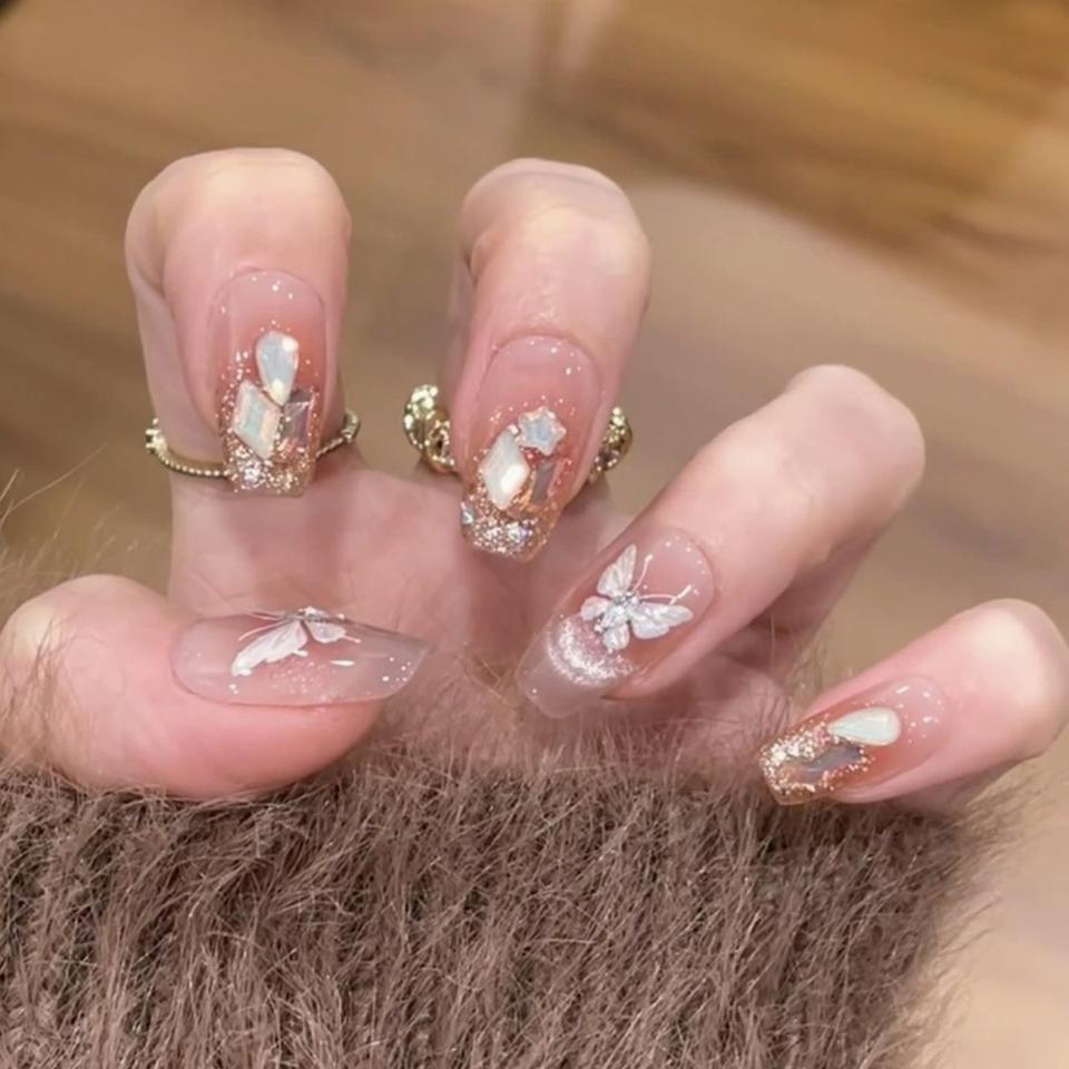 ชุดเล็บปลอมเจลปลอม30ชิ้นแบบกดติดเล็บสไตล์ฝรั่งเศสสั่งทำ
