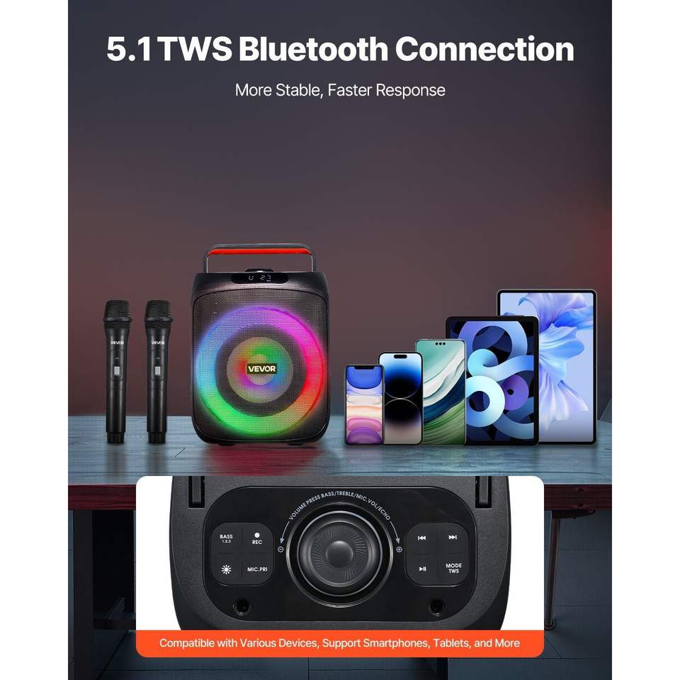 เครื่องคาราโอเกะแบบพกพา30W 6.5นิ้วพร้อมไมโครโฟนไร้สาย2ตัวสำหรับผู้ใหญ่