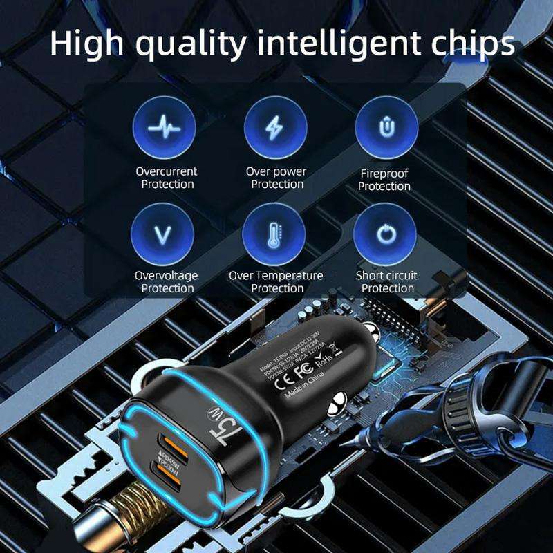 เครื่องชาร์จในรถยนต์แบบ QC3.0 PD 30W ชนิด C พร้อมพอร์ต USB 2พอร์ตชาร์จเร็วสำหรับโทรศัพท์มือถือกล้องนาฬิกาอัจฉริยะ