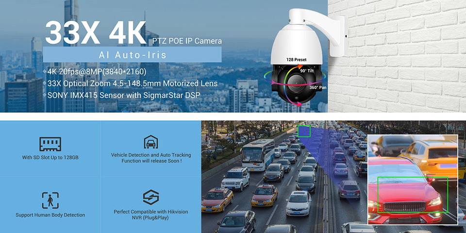 กล้องวงจรปิดกลางแจ้ง IR 30X M,กล้องโดมความเร็วสูง IP PTZ 8MP 4K 33X Zoom พร้อมช่องใส่การ์ด SD ที่ปัดน้ำฝน150 PRO