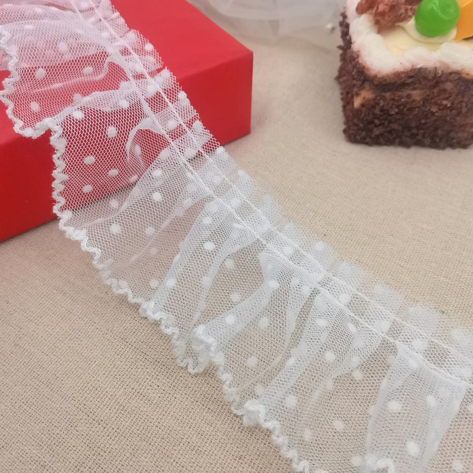 ผ้าเครปเนื้อนุ่ม ขนาด 30x10x10 นิ้ว ลายจีบระบายขอบลูกไม้ พร้อมลายจุดและขอบลูกไม้