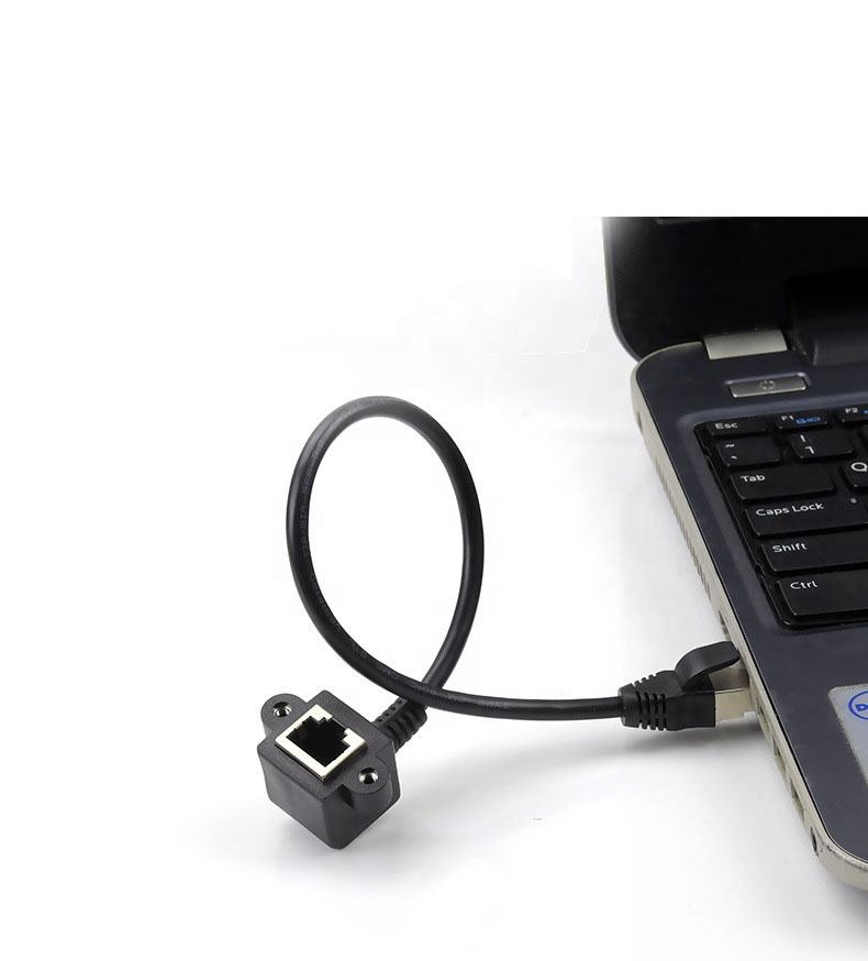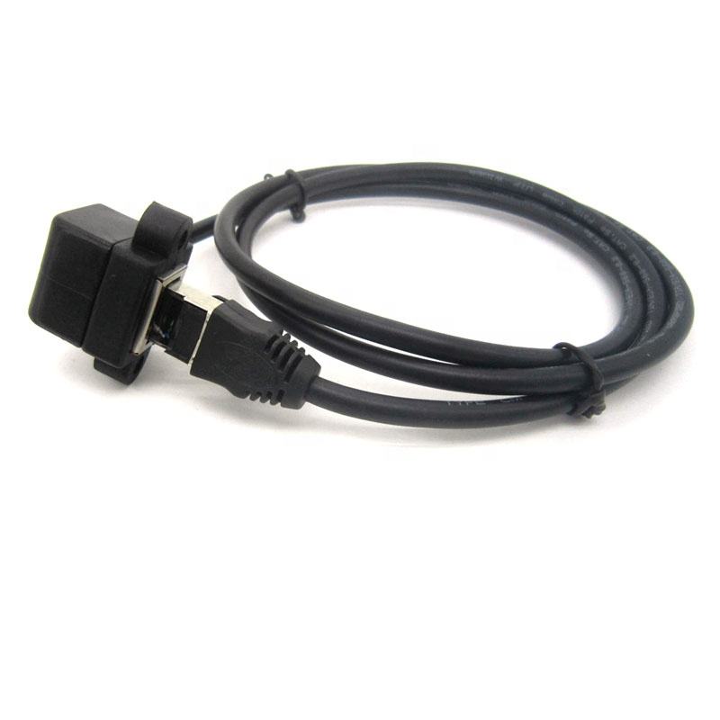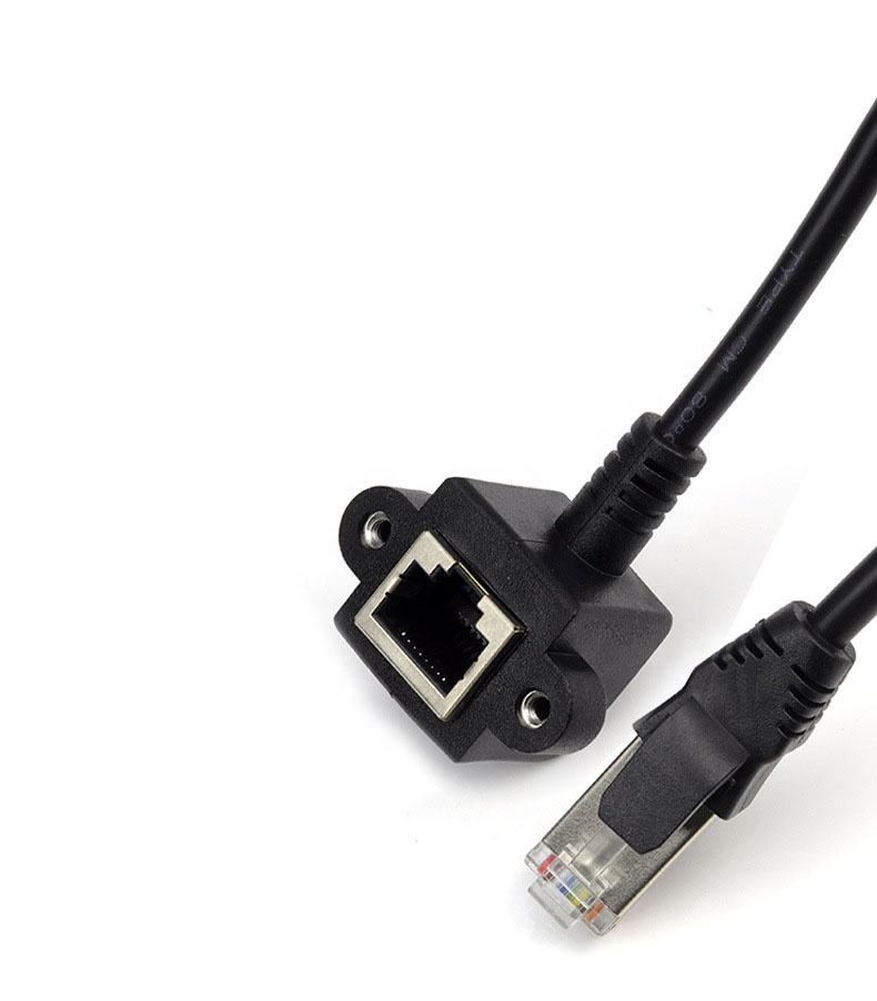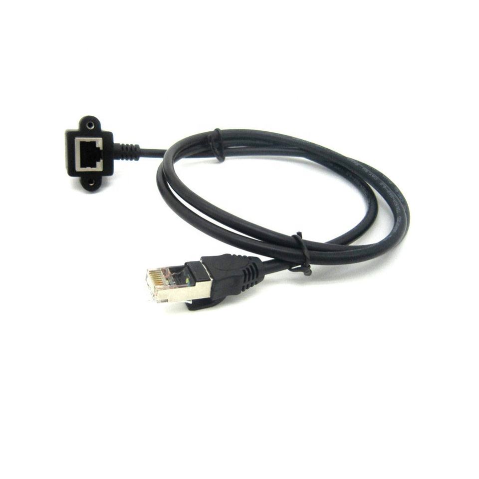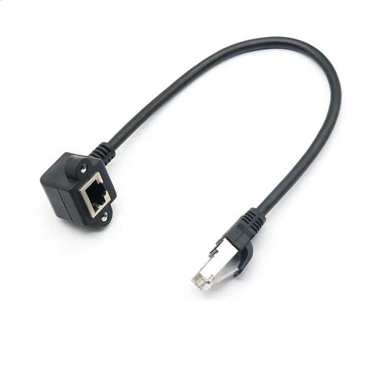สาย Cat6 30ซม. พร้อมแผง Rj45แบบสกรูสายต่อเครือข่ายแบบมีฉนวนป้องกันมุม90องศา Rj45สายต่อสำหรับตัวผู้กับตัวเมีย