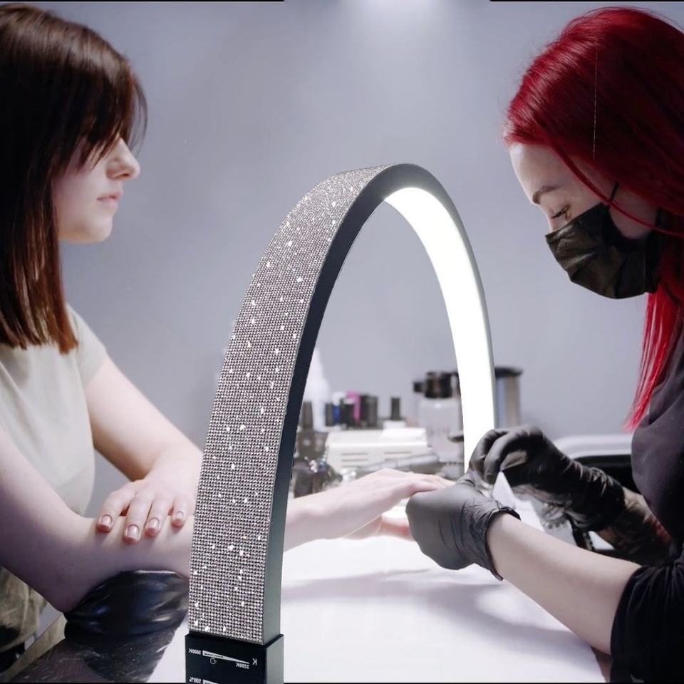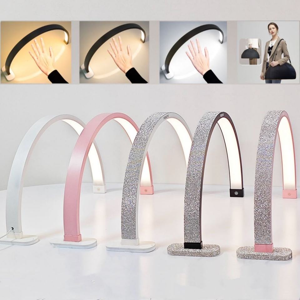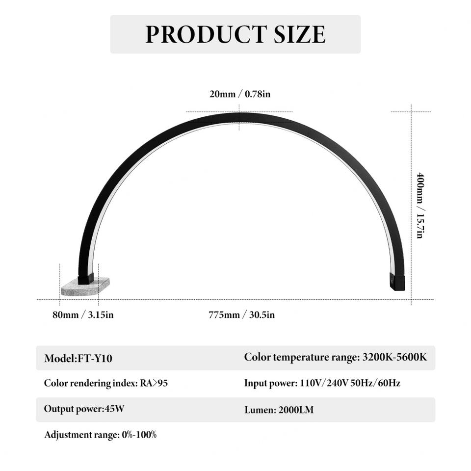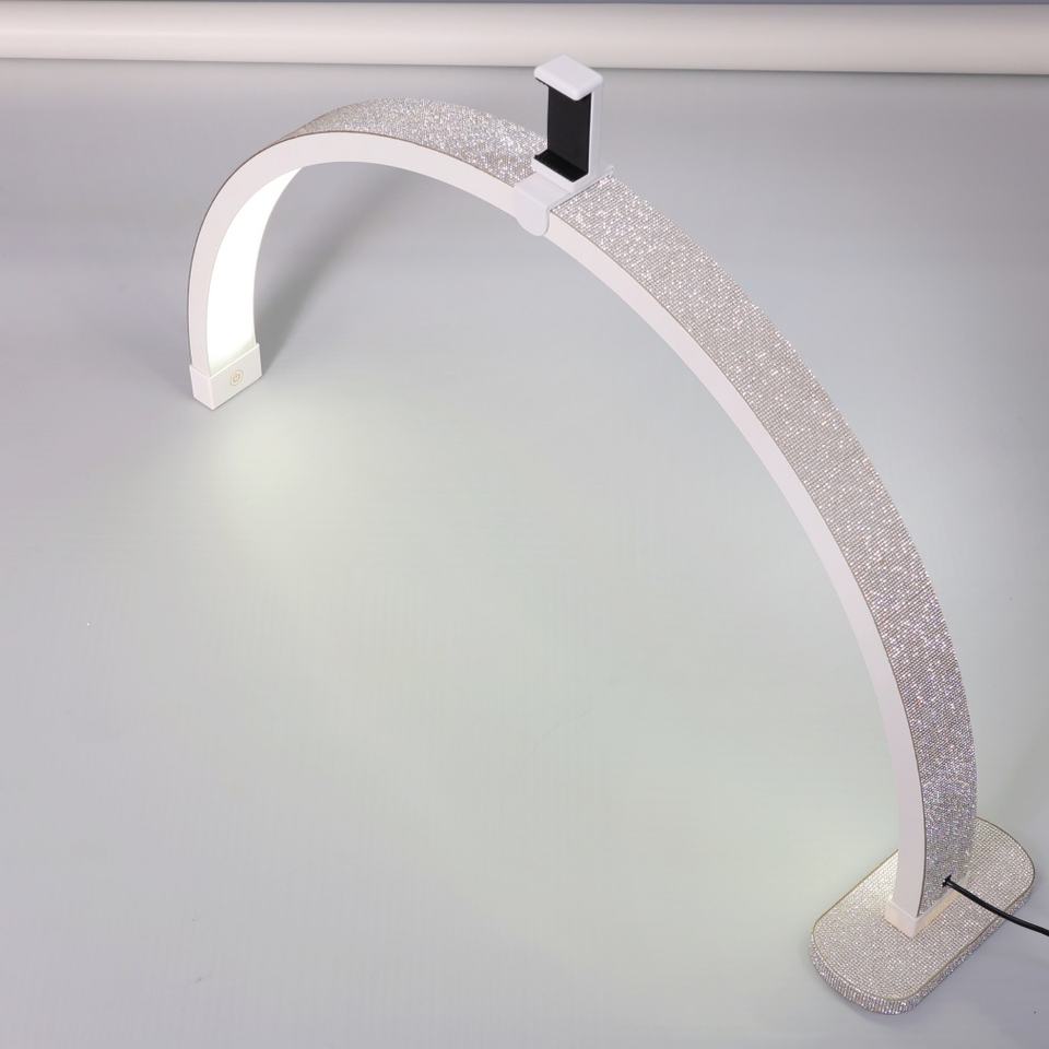 โคมไฟเล็บ LED ขนาด 30 นิ้ว รูปทรงครึ่งวงกลม สำหรับทำเล็บ โต๊ะทำเล็บ โคมไฟตั้งโต๊ะ ไฟวงแหวนโค้ง สำหรับต่อขนตา ร้านเสริมสวย พร้อมที่วางโทรศัพท์