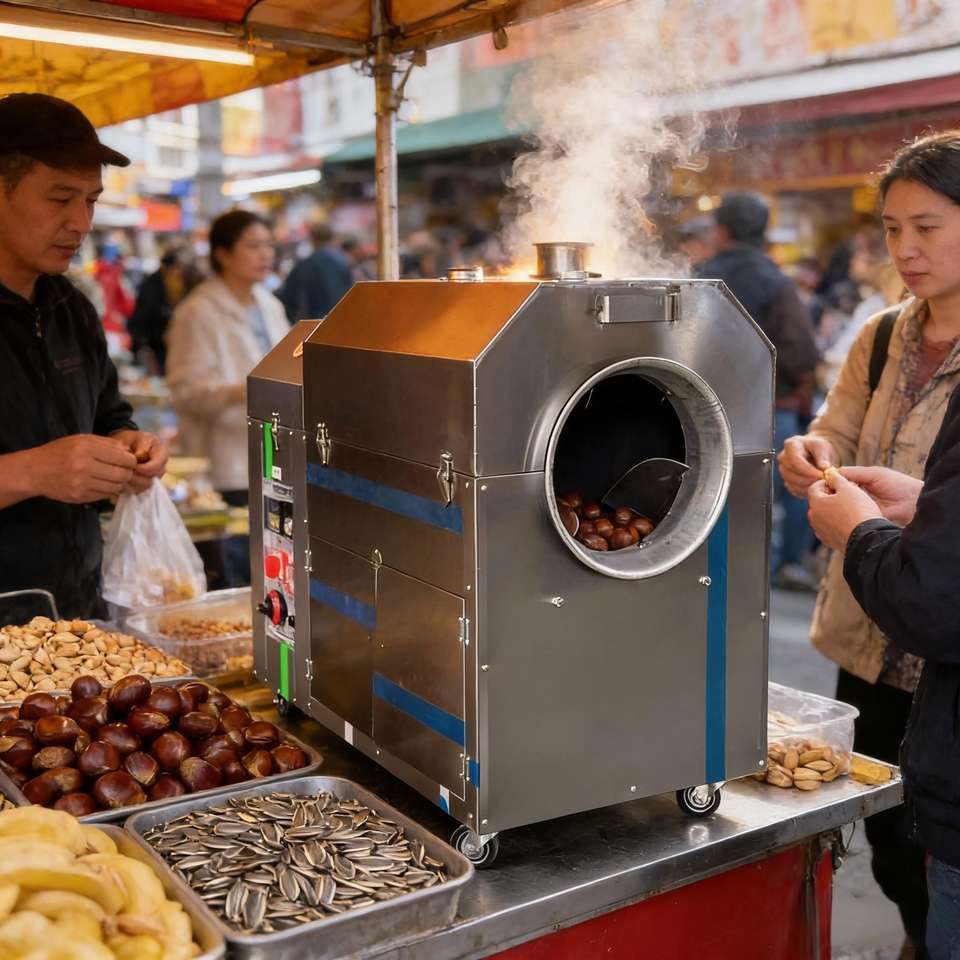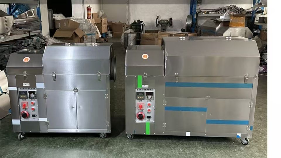 เครื่องคั่วกาแฟ โกโก้ ถั่วลิสง แบบถังหมุนเชิงพาณิชย์ ขนาด 30 กก. 50 กก. 100 กก. ใช้แก๊สและไฟฟ้า