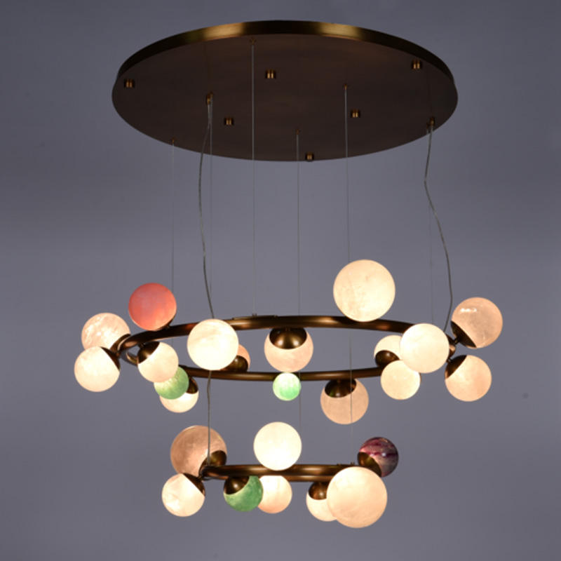 โคมไฟเพดานโลหะคุณภาพสูง 30 กก. พร้อมคริสตัล ขนาดกลาง ปรับความสว่างได้ แสงสีขาวนวล 2700K