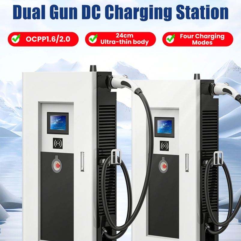 30KW 100A CCS1แบบ CCS2 GB/T chademo ที่ชาร์จรถยนต์ EV แบบติดตั้งบนพื้นชาร์จได้พลังงานสูงกอง