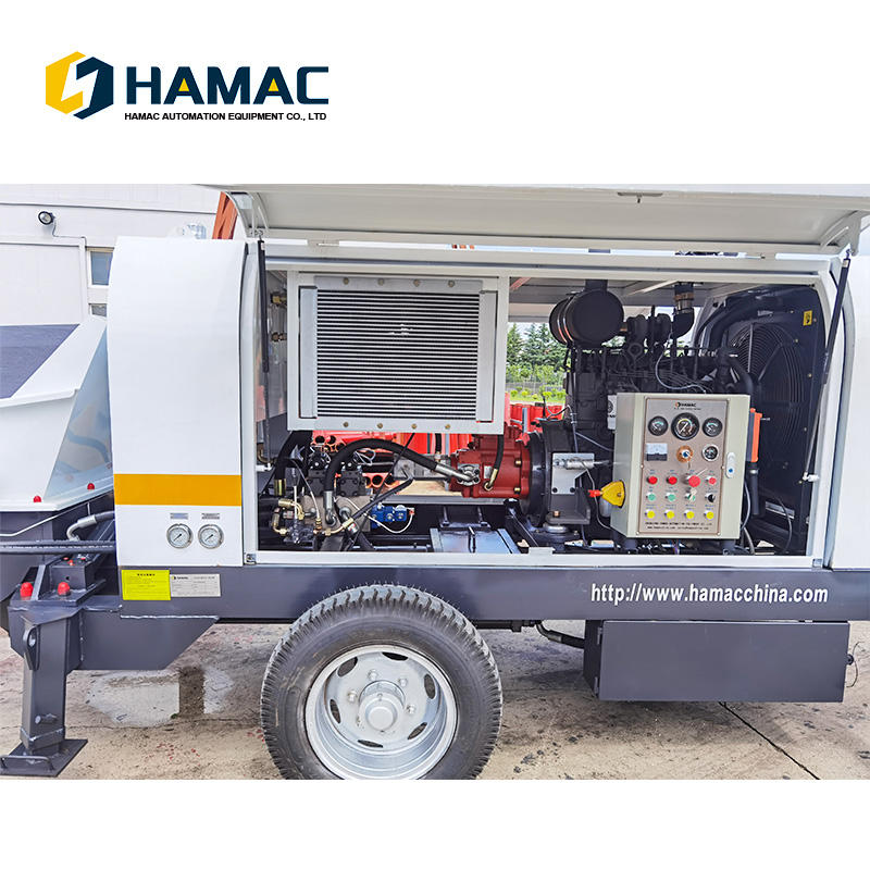 ปั๊มคอนกรีตแบบรถพ่วงดีเซลแรงดันสูง 30 ม./ชม. เครื่องยนต์ Weichai ควบคุมระยะไกล ระยะส่งแนวตั้ง สำหรับงานก่อสร้าง