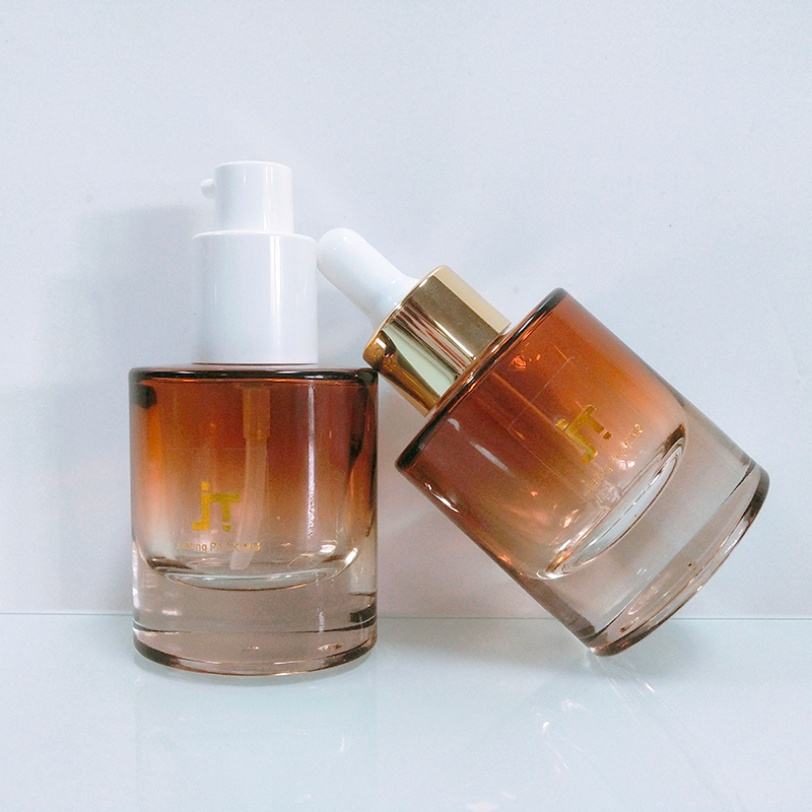 ขวดแก้วหยดน้ำมันหอมระเหยทรงรีแบบขุ่น ขนาด 30 มล. 40 มล. 100 มล. 120 มล. แบบกำหนดเองได้ พร้อมหัวปั๊มแบบกด