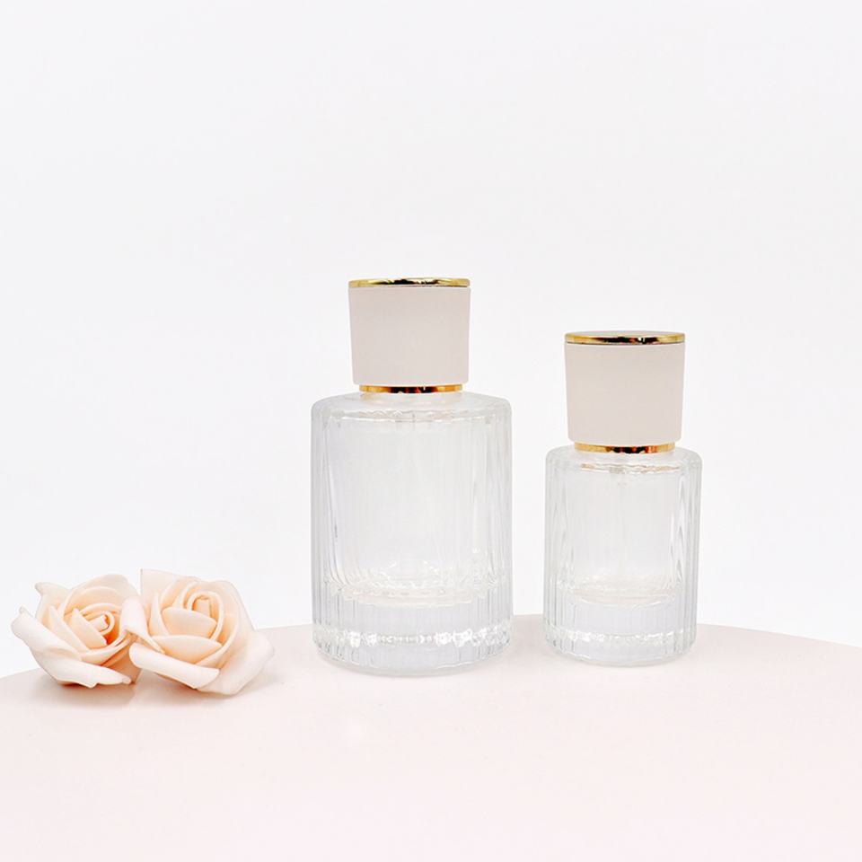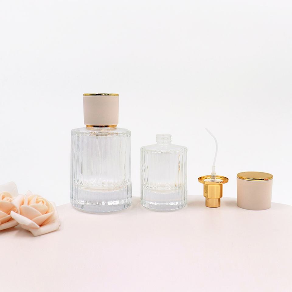 ขวดสเปรย์น้ำหอมขนาด 30 มล. 50 มล. 100 มล. ขวดบรรจุภัณฑ์เครื่องสำอางระดับไฮเอนด์ ขวดเปล่าแบบขวดน้ำหอมลายทางแนวตั้งแบบขันเกลียว