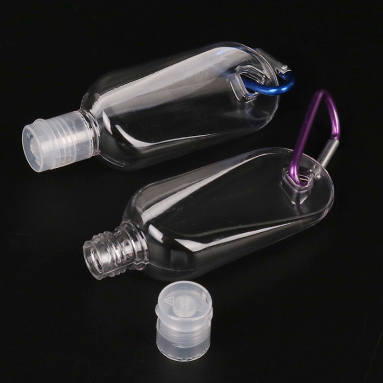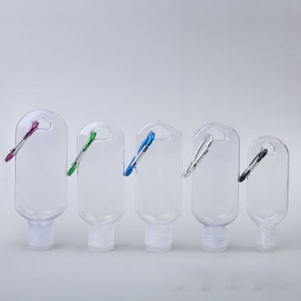ขวดสเปรย์พลาสติก PET ขนาด 30 มล. 50 มล. 60 มล. 80 มล. แบบรีไซเคิลได้ ปลอดสารพิษ พร้อมหัวปั๊มและพวงกุญแจ สำหรับใส่เจลแอลกอฮอล์ล้างมือ