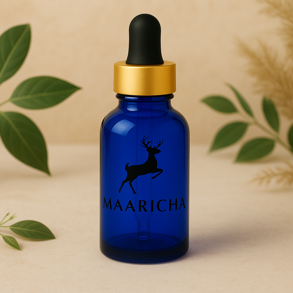 30ml Euro Round Glossy Blue Bottle with Dropper Top Cylinder Shape for Pharma & Cosmetics Industry