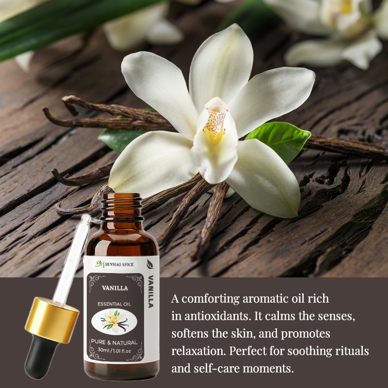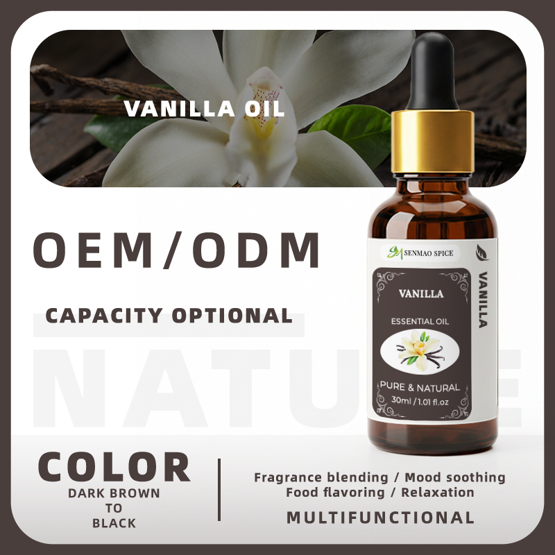 น้ำมันหอมระเหยวานิลลาออร์แกนิคเข้มข้นบริสุทธิ์ 100% ขนาด 30 มล. สำหรับอโรมาเธอราพี บำรุงผิว และผ่อนคลาย (ฉลากส่วนตัว)