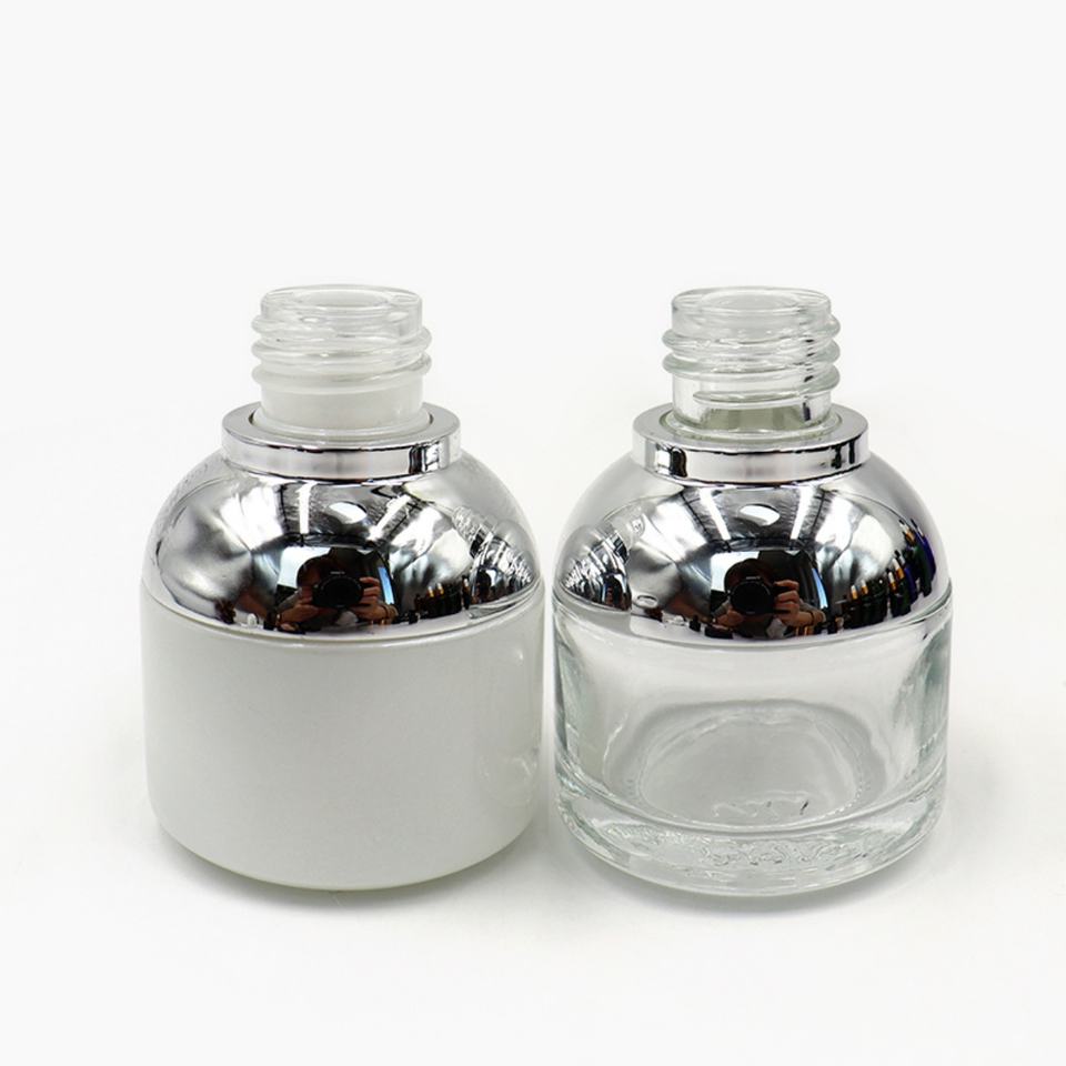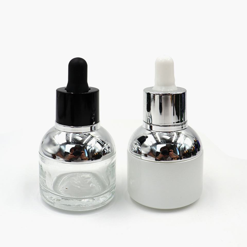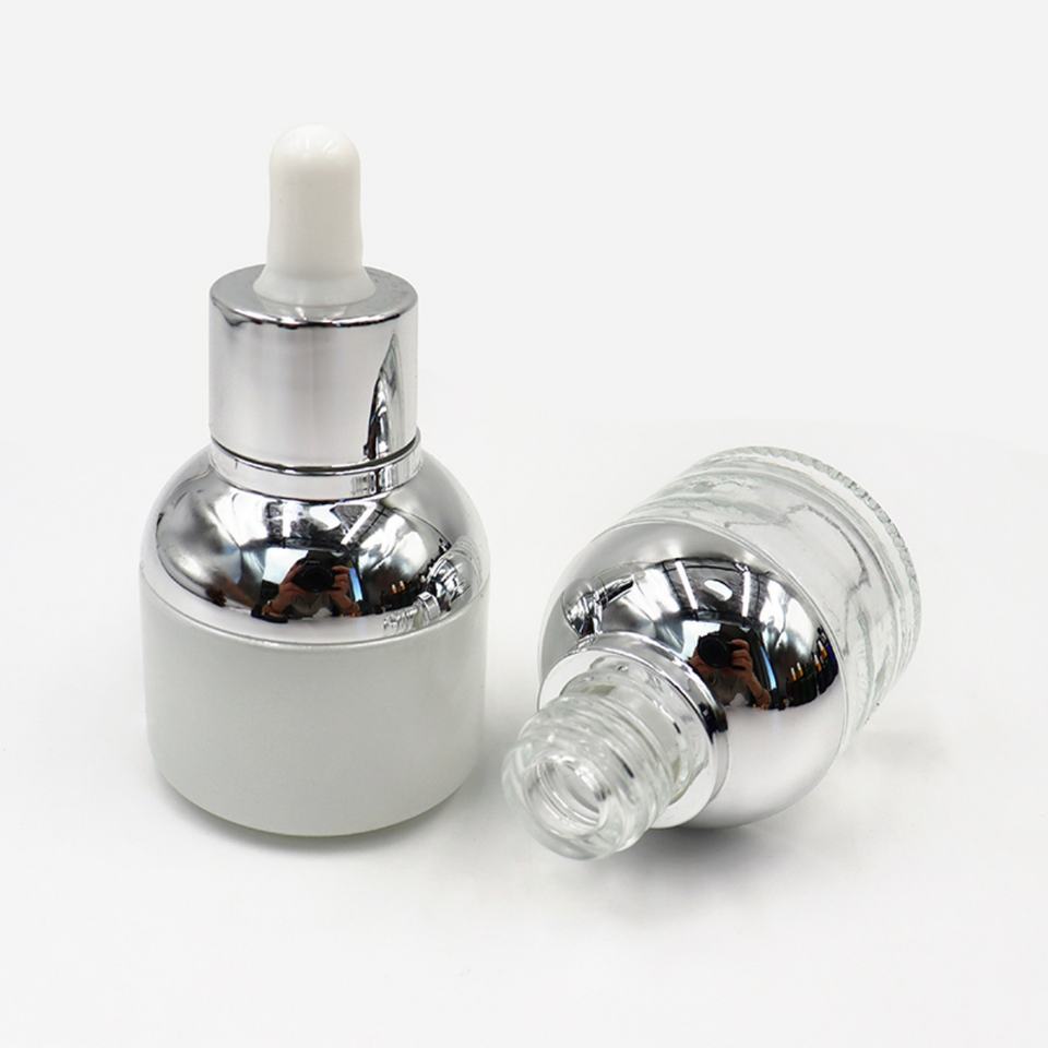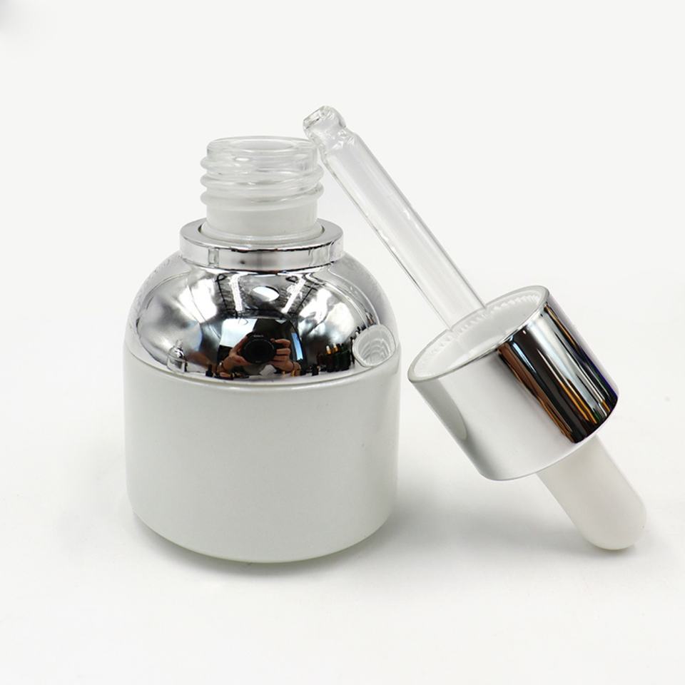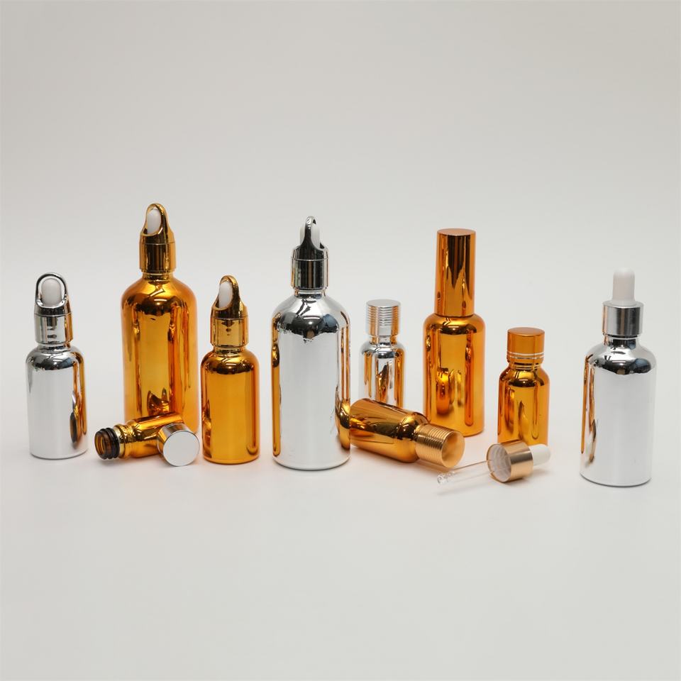 ขวดเซรั่มน้ำมันหอมระเหยขนาด 30 มล. พร้อมหลอดหยด ที่เช็ดทำความสะอาด หลอดไนไตรล์ ขนาด 1 ออนซ์ ขวดแก้วหยดสีทองเงินหรูหราพร้อมปลอกคอขวด