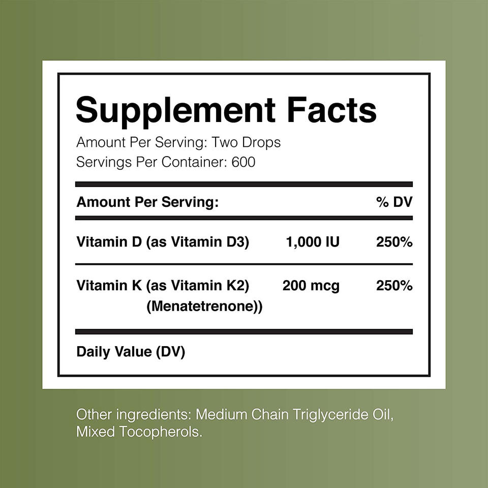 วิตามินดี3 1000IU 200mcg พร้อมวิตามินK2 ต่อหนึ่งหน่วยบริโภค ขนาด 30 มล. ช่วยเสริมสร้างความหนาแน่นของกระดูกและดูดซึมแคลเซียม