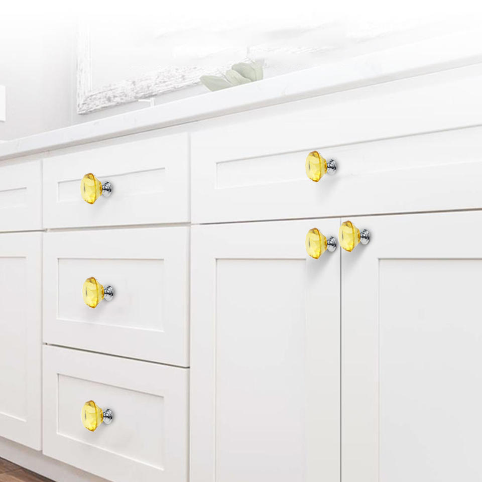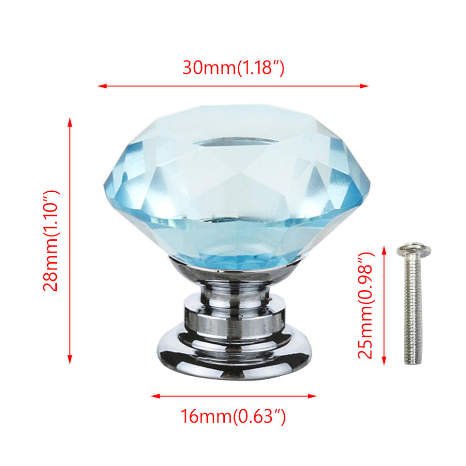 มือจับตู้คริสตัลรูปทรงเพชรขนาด 30 มม. อุปกรณ์ตกแต่งเฟอร์นิเจอร์ ลูกบิดกระจก มือจับตู้