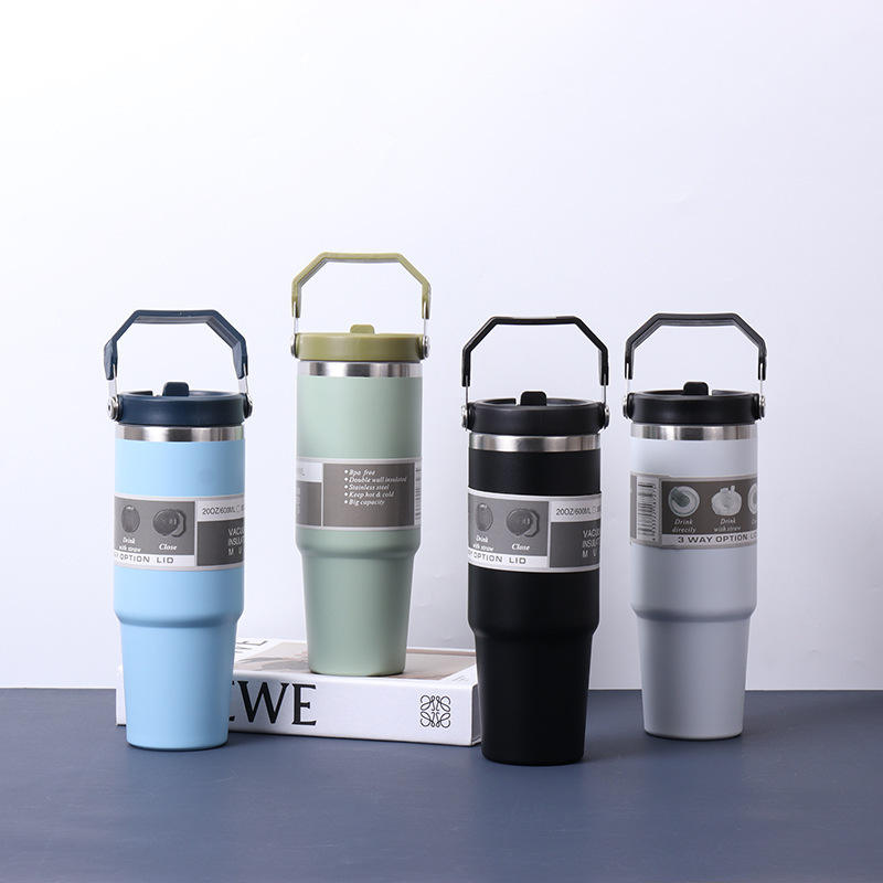 กระติกน้ำสุญญากาศสแตนเลสแบบพกพาขนาด 30 ออนซ์ ป้องกันการรั่วซึม สำหรับเดินทาง พร้อมหลอดดูด แก้วน้ำเก็บความร้อนสำหรับรถยนต์ มีหูหิ้ว