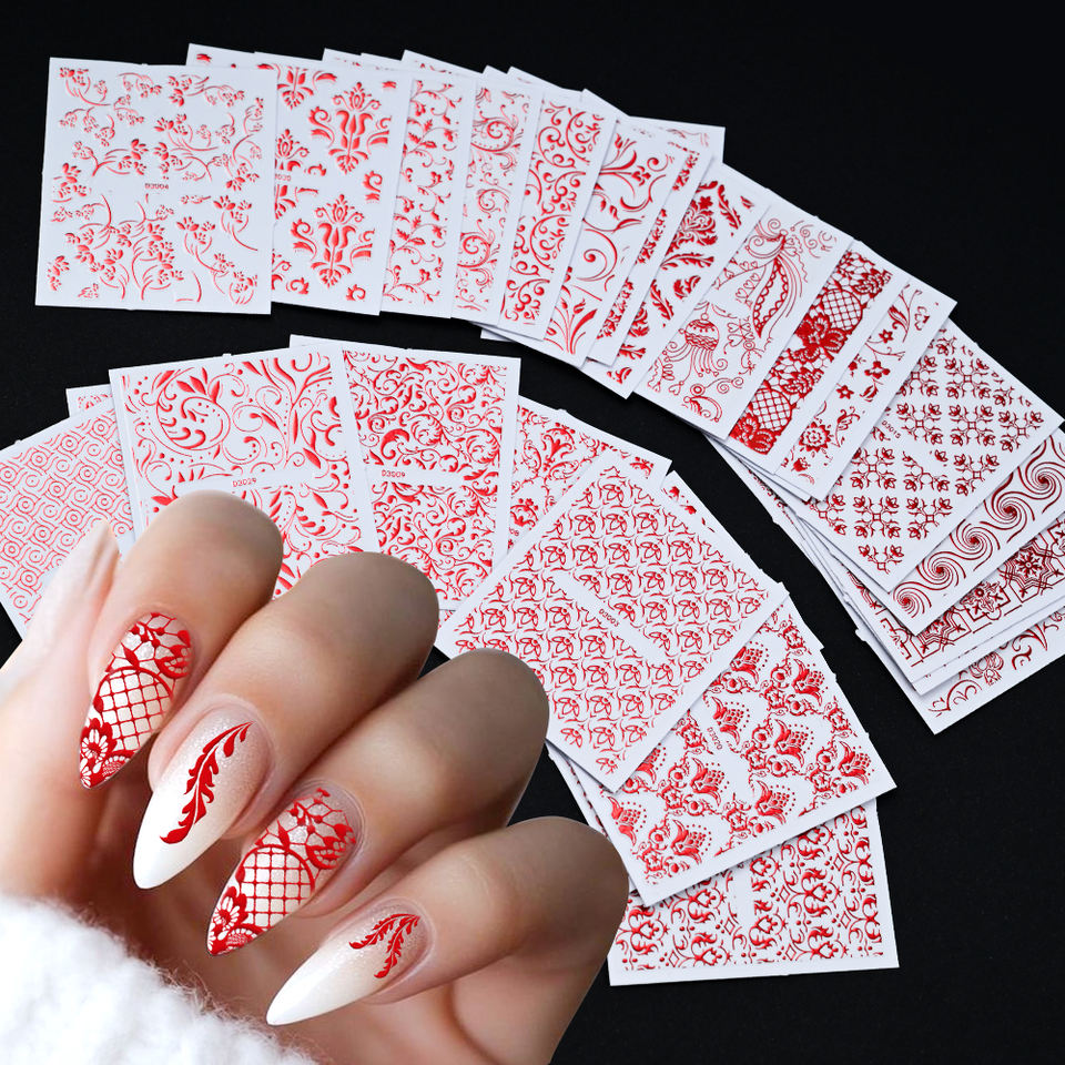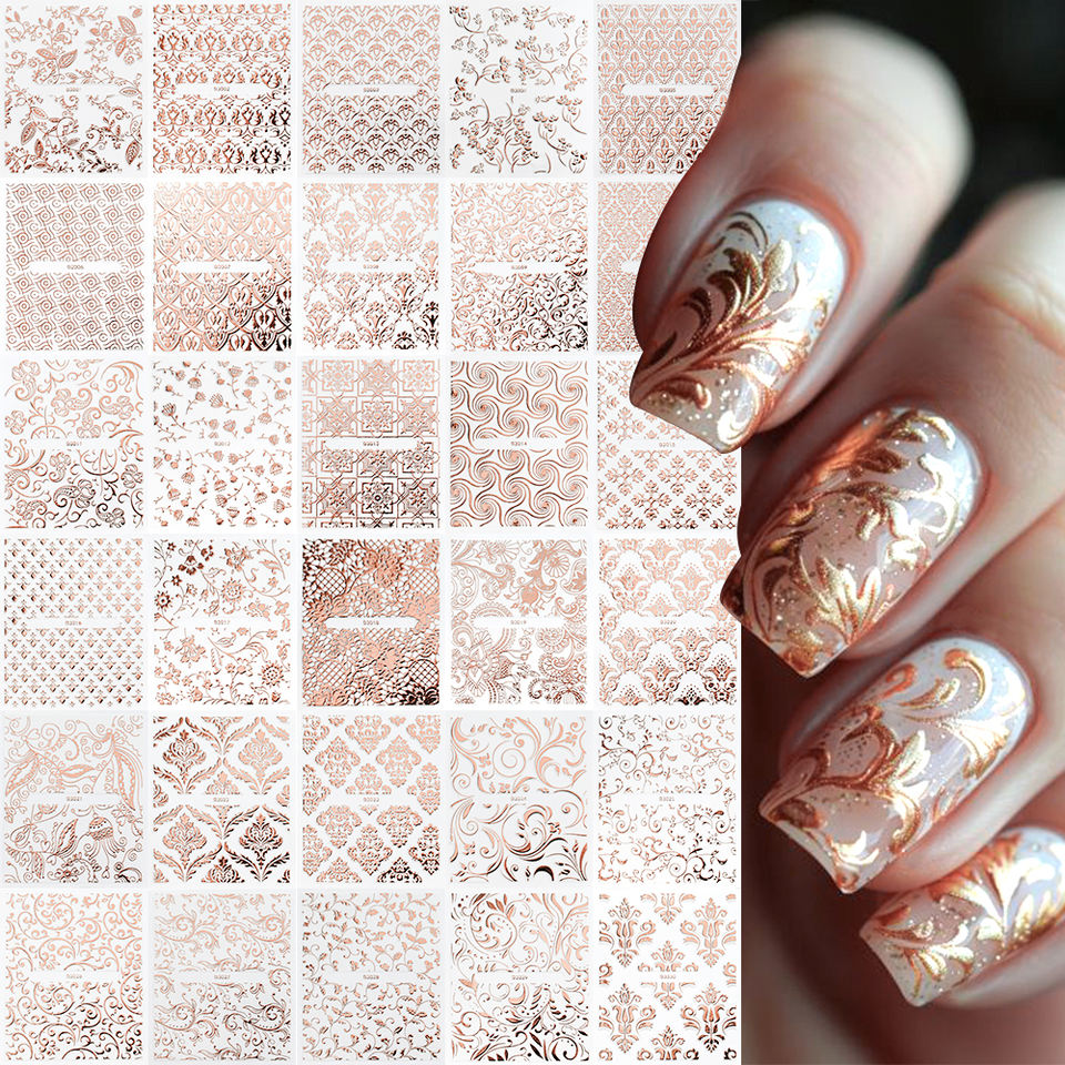 ชุดสติ๊กเกอร์ติดเล็บลายดอกไม้ลูกไม้สีทองแบบกลวง30ชิ้นลายแมนดาลาแบบเซ็กซี่รูปลอกแบบเลื่อนติดเล็บอุปกรณ์ตกแต่งเล็บมือแบบ DIY มีเสน่ห์