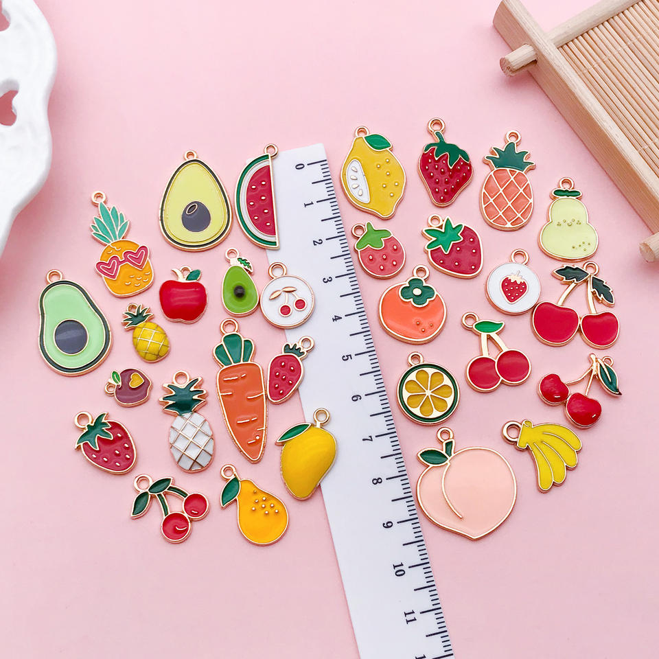 งานหัตถกรรมจี้ห้อยคอแอปเปิ้ลเชอร์รี่ผลไม้30ชิ้น/เซ็ตเสน่ห์โลหะผสมแบบทำมือ