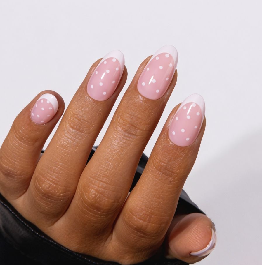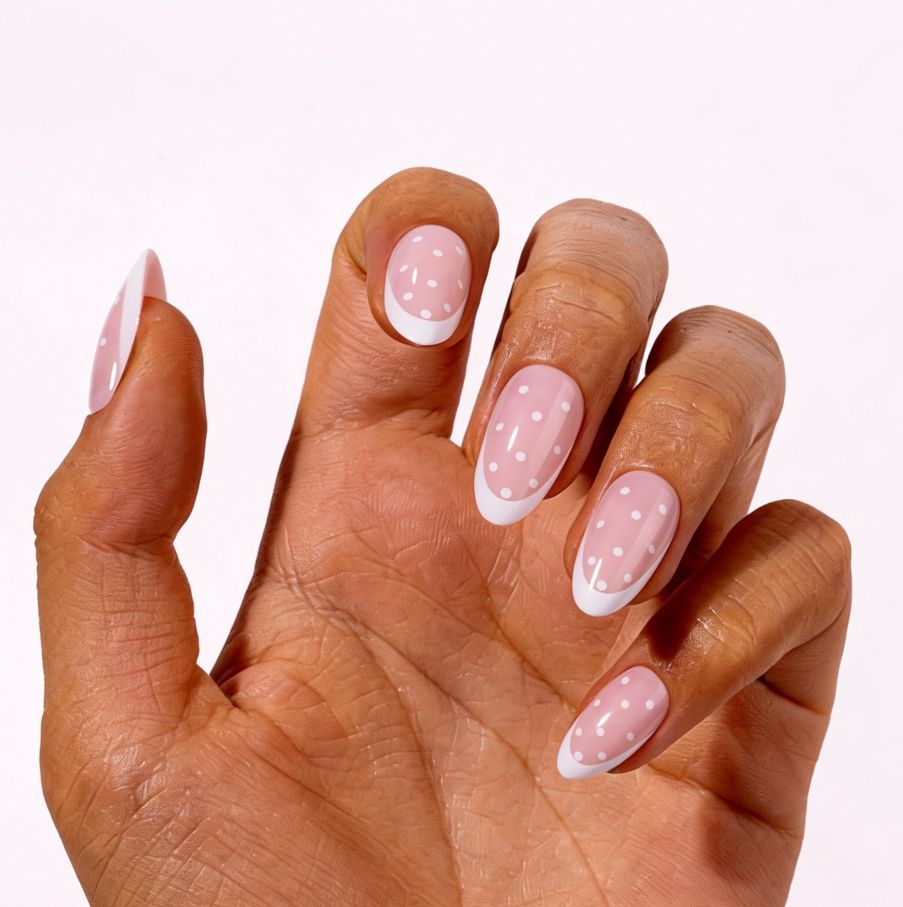 ชุดเล็บปลอมแบบกดติด 30 ชิ้น สไตล์ฝรั่งเศส ลายจุดสีชมพู น่ารัก สำหรับสาวๆ ใช้ได้ทุกวัน รีไซเคิลได้ พร้อมกาวติดเล็บ รับผลิตแบรนด์ส่วนตัว